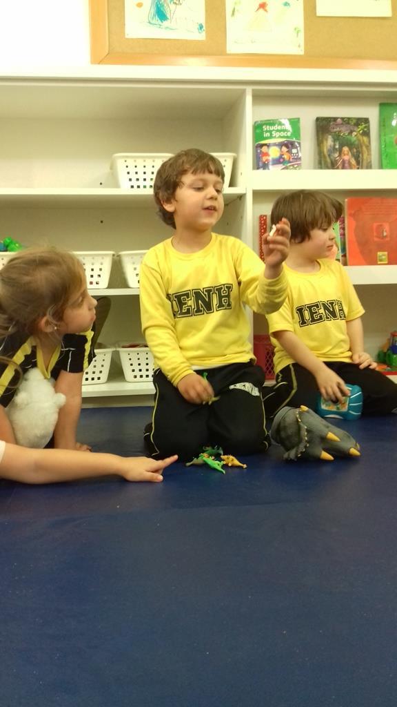 No dia 23 de agosto, após a contação do livro “How do dinosaurs say goodnight”, de Jane Yolen, os estudantes perceberam que cada dinossauro da história tinha um brinquedo em seu quarto, ficando curiosos para saber sobre os nomes dos brinquedos na Língua Inglesa. A partir disso, a Professora Kelly Melo e a turma exploraram o vocabulário relacionado com os brinquedos da sala, com os brinquedos que os dinossauros tinham nos seus quartos e também com os brinquedos preferidos de cada aluno.