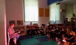 A Professora Júlia Wolff fez a leitura de contos de horror produzidos pelos alunos da turma. Sem avisá-los, leu os textos, interpretando um dos personagens dos contos escolhidos (um conto de cada turma). Segundo Júlia, os estudantes ficaram surpresos ao escutar suas próprias histórias e perceberam que são ótimos escritores.