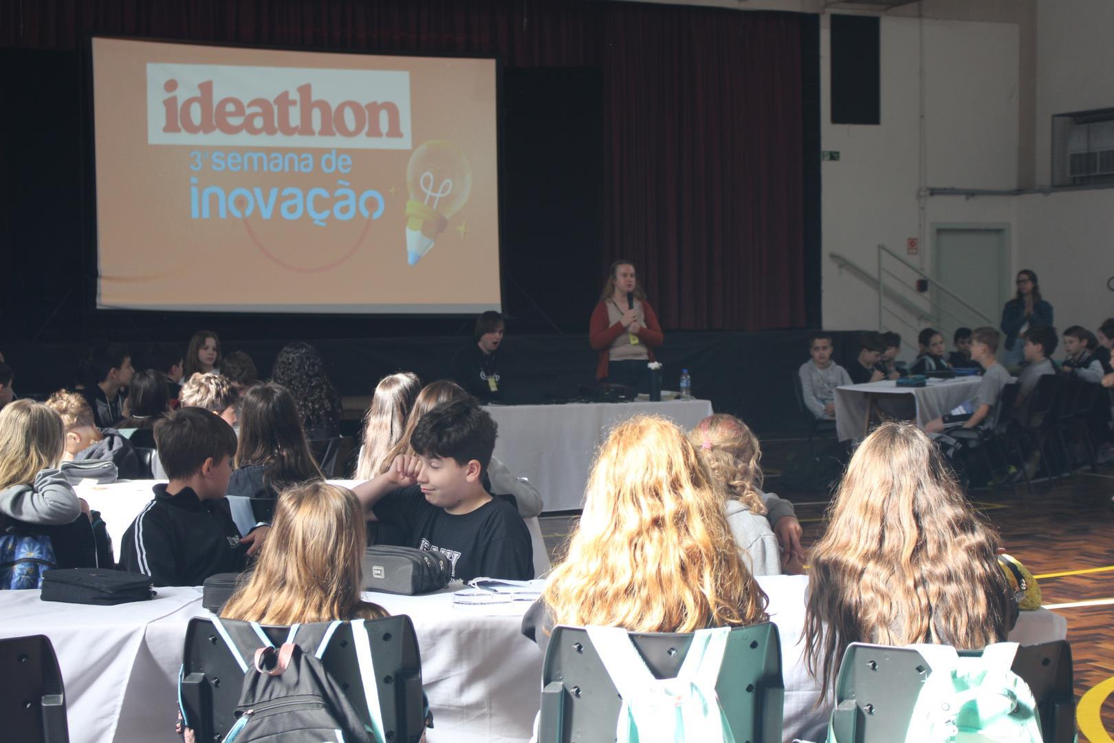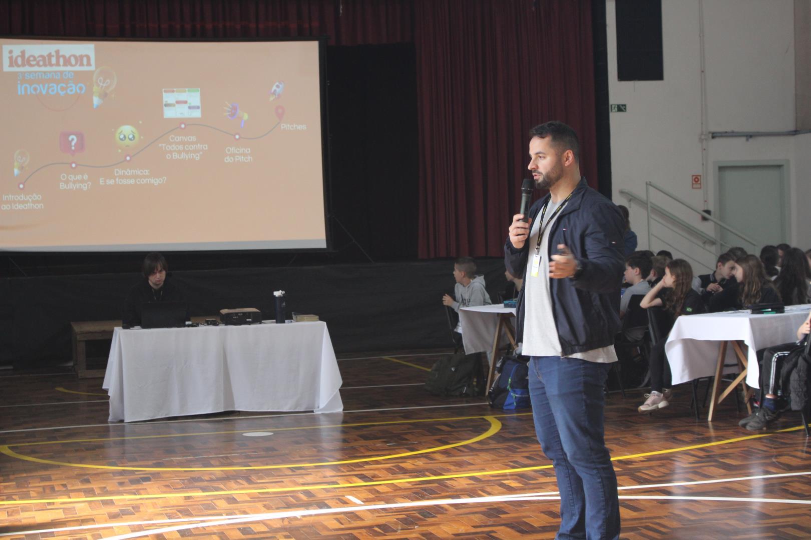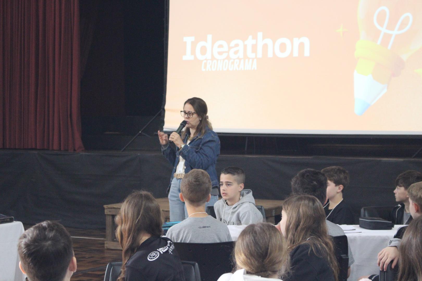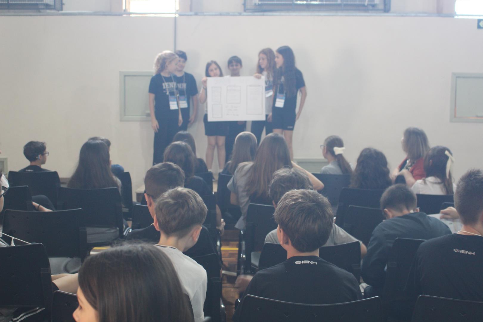 A culminância do Ideathon ocorreu com a apresentação dos “pitches”, pequenas apresentações criativas nas quais os grupos compartilharam suas ideias e slogans para tornar a escola um ambiente mais acolhedor e respeitoso.