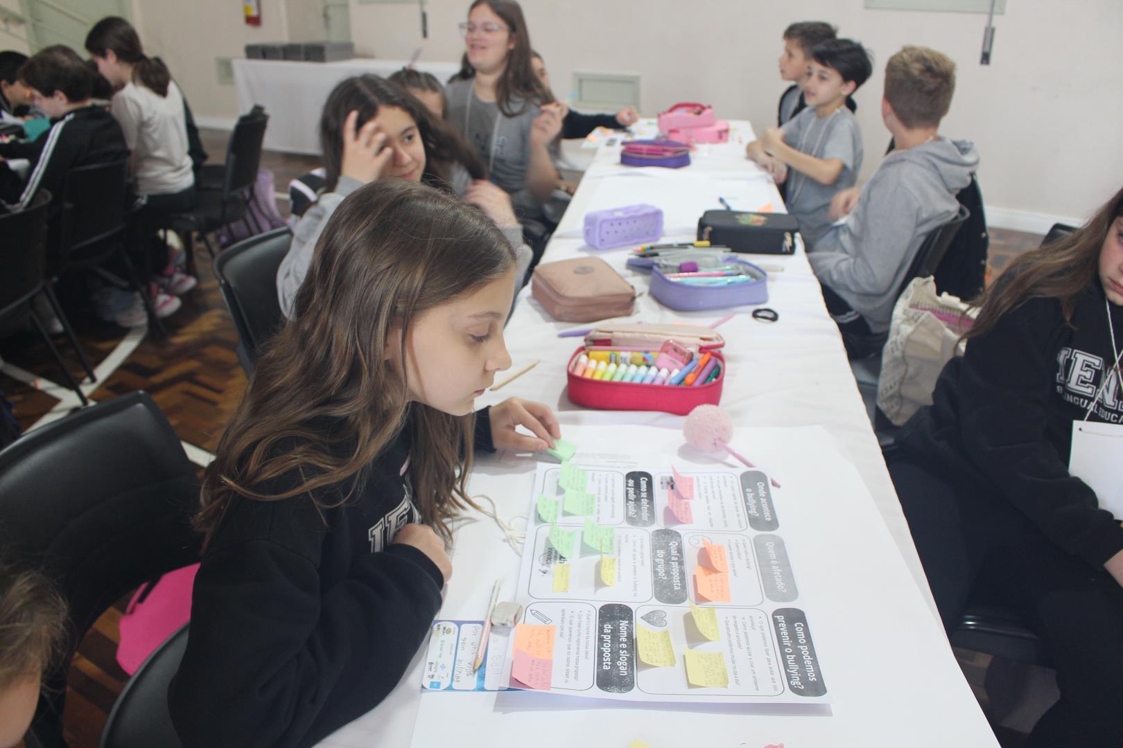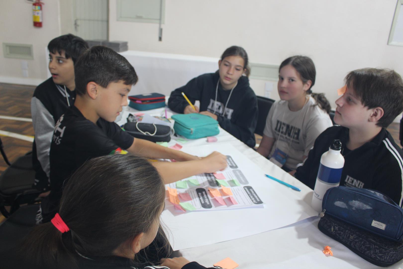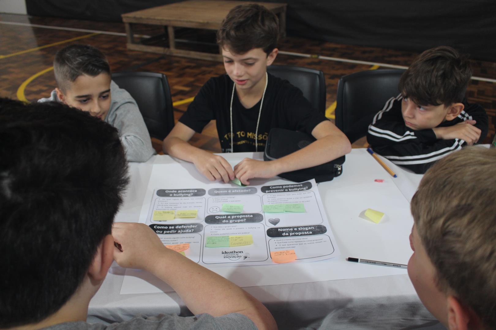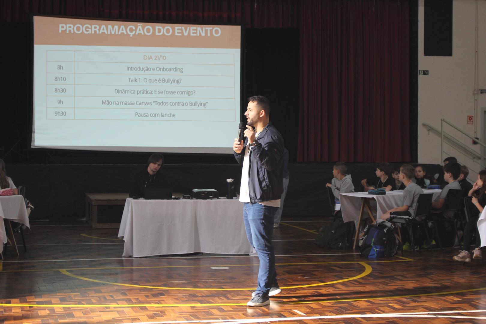 Durante a manhã, os estudantes participaram de momentos inspiradores e dinâmicos, como painéis de reflexão, rodas de conversa e a elaboração de propostas no Canvas “Escola sem Bullying”, que desafiou os grupos a identificar situações de bullying e propor ações práticas para combatê-las.