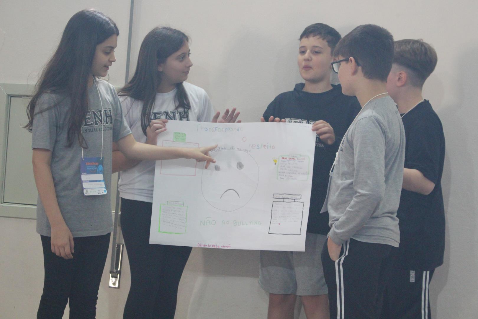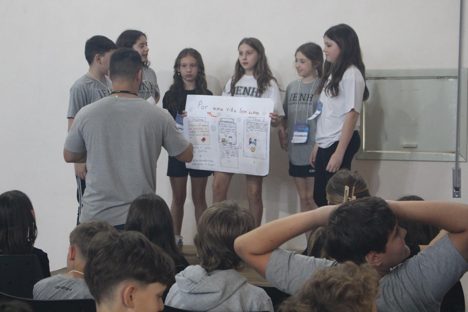 Encerrando o ciclo das turmas de Year 5 do Ensino Fundamental do Currículo Internacional Bilíngue da IENH - Unidades Pindorama e Oswaldo Cruz, foi realizado, no dia 11 de novembro, o último Pinwaldo de 2025 na Unidade Fundação Evangélica. A atividade, chamada “Ideathon Pinwaldo: juntos contra o Bullying”, marcou um importante momento de transição, permitindo que os estudantes vivenciassem experiências na Unidade que irão frequentar no próximo ano.