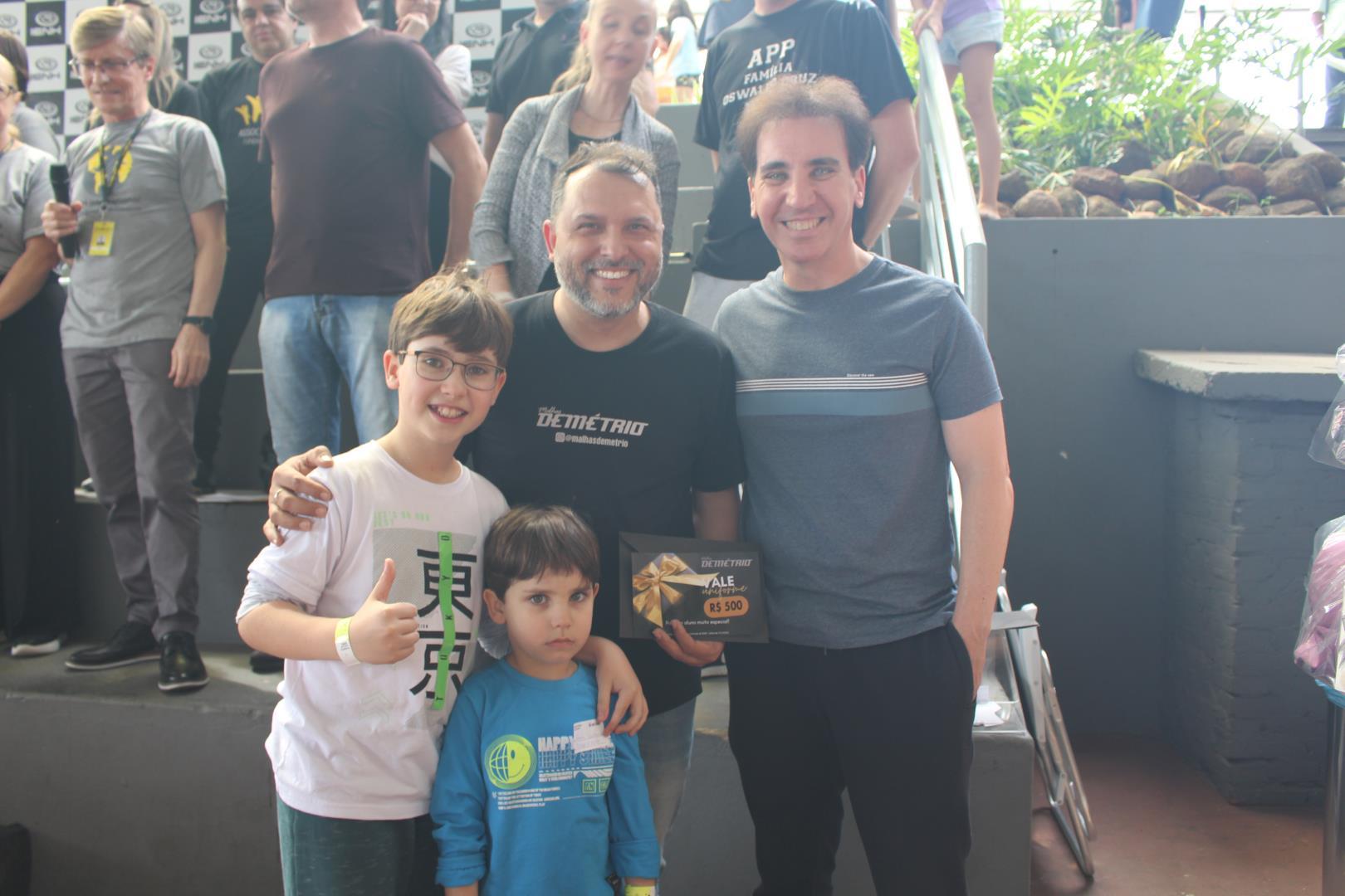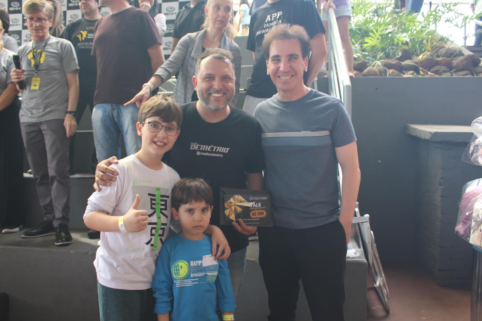 Também foram sorteados prêmios especiais: uma bicicleta e um Labubu, oferecidos pela Nativu’s, além de 3 vales-compra de R$ 500 cada da Loja de Uniformes Demétrio.