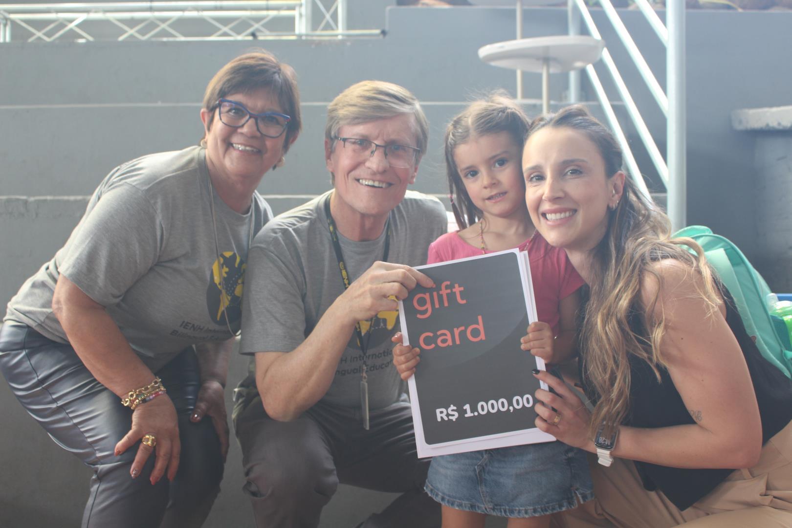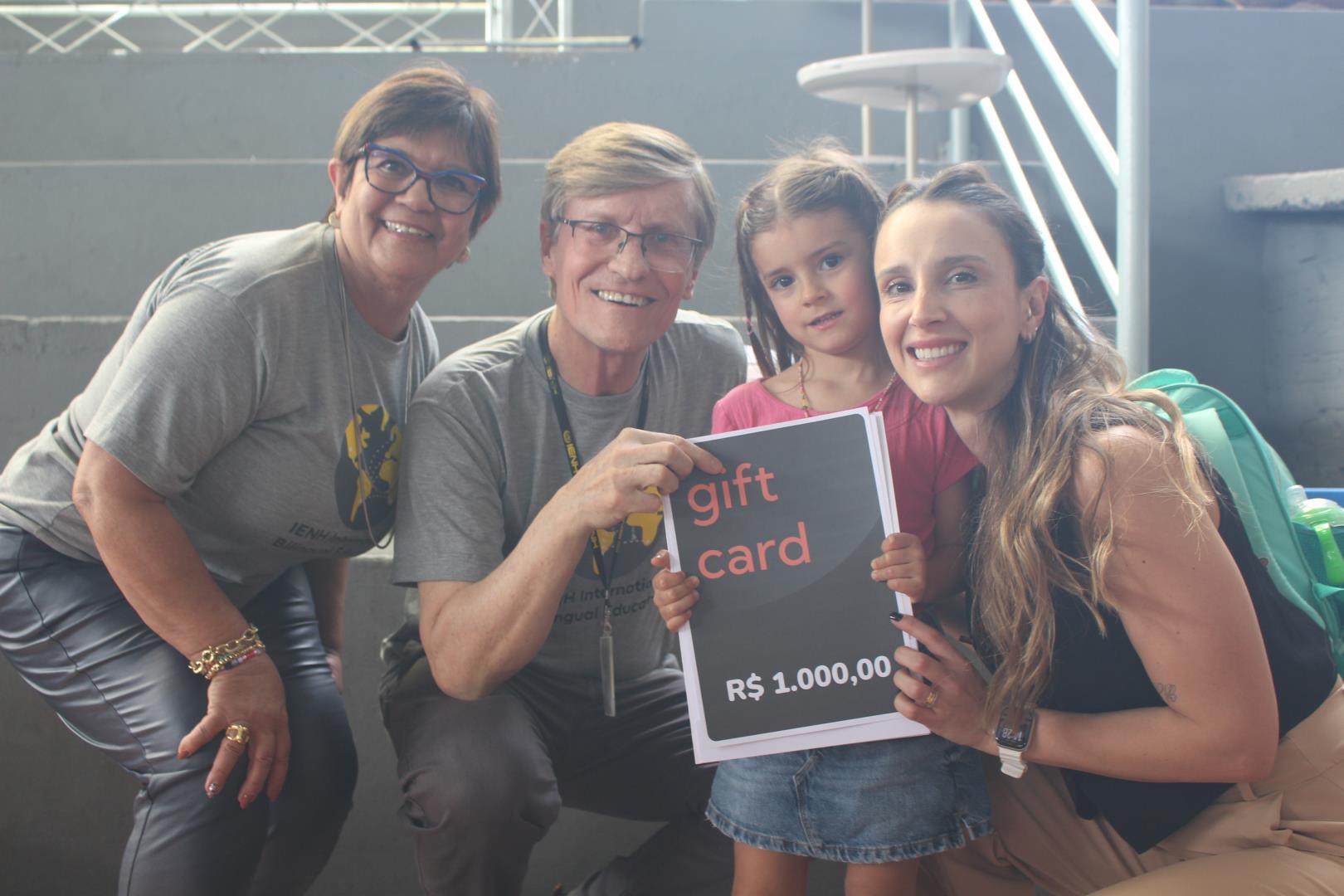 O sorteio de brindes marcou o dia por ser um dos momentos mais esperados do evento, com destaque para os prêmios da Campanha de Rematrículas 2026, sorteados entre as famílias que realizaram a rematrícula até 24 de setembro.