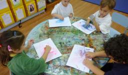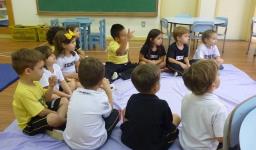 Inicialmente, a professora Jôsie Rodrigues e a Teacher Kelly Melo convidaram os alunos a “viajar ao mundo da imaginação”, a bordo do “tapete mágico”. Em seguida, realizaram questionamentos sobre o sentimento amor aos alunos… Assim, deram início na contação da história “Qual é a cor do amor?”, de Linda Strachan.