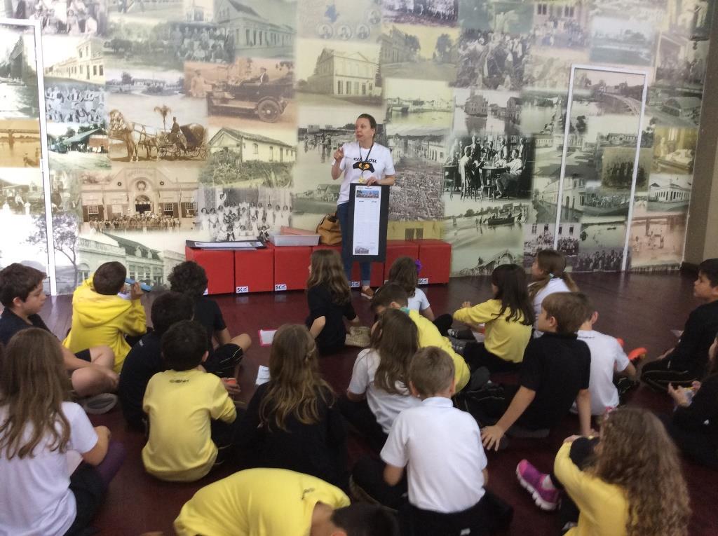 Após o almoço, em que os estudantes se deliciaram com os pratos do Food Truck Panquecas da Vovó, o grupo foi para além dos limites da de Novo Hamburgo. A parada aconteceu no Museu Histórico Visconde de São Leopoldo. No local, os alunos ouviram uma palestra sobre a chegada dos imigrantes alemães e, dentro do próprio museu, jogaram um jogo inspirado em RPG (role-playing game), organizado pela professora Janaína. Ao retornarem para a escola, os alunos receberam como lembrança do dia de imersão, uma mini-cuca e um jogo de percurso que foi construído durante as aulas de Língua Inglesa.