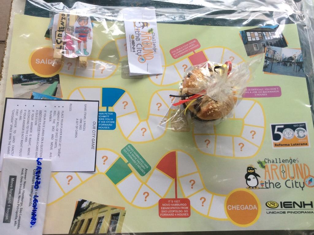 Na manhã, os alunos foram recebidos com um Café Colonial preparado pelas professoras e representantes do restaurante da escola. Em seguida, foram divididos em duplas e receberam um mapa da cidade com enigmas em QR Codes. Com os tablets decifraram o primeiro enigma que levou a turma até a praça Bento Gonçalves. Assim, a atividade foi transcorrendo durante a manhã. Além da praça 20 de setembro, os demais pontos visitados foram o Centro Cultural Albano Hartz no Calçadão, o Monumento ao Sapateiro, a primeira Fábrica de Calçados de NH - Adams SA e a Biblioteca Municipal.