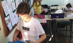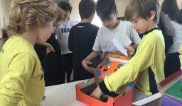 Nos meses de abril e maio, os alunos foram desafiados a pensarem e registrarem, em uma caixa construída na aula de Língua Inglesa Aplicada em Artes, os principais momentos que tiveram no 4º ano, em 2017. Após esse registro, prepararam uma fala, em Espanhol, para apresentarem sua caixa aos alunos do 4º ano de 2018. Eles mostraram como evoluíram na habilidade de se expressar em Espanhol, além de provocar nos colegas do atual 4º ano E, um desejo e uma grande expectativa pelo ano que estão vivendo na escola.