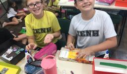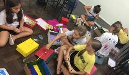 A atividade organizada pelas Professoras Bianca Cristiana dos Reis, Cristiane Ely Lemke e Raquel Meirose, é parte de um trabalho de intercâmbio realizado entre os 5ºs e o 4º ano a partir da história Menina Luz, em que a personagem principal viaja dentro de uma caixa, na qual vai levando um pouco das pessoas e dos lugares que conhece. Os alunos dos 5ºs anos continuarão completando as suas caixas, colecionando momentos significativos de 2018.