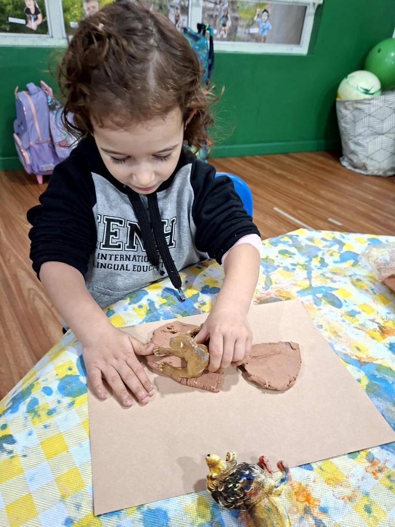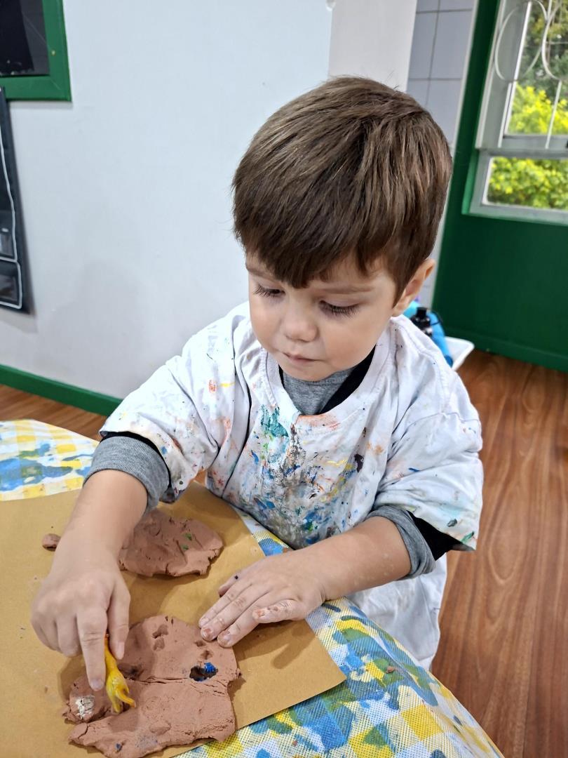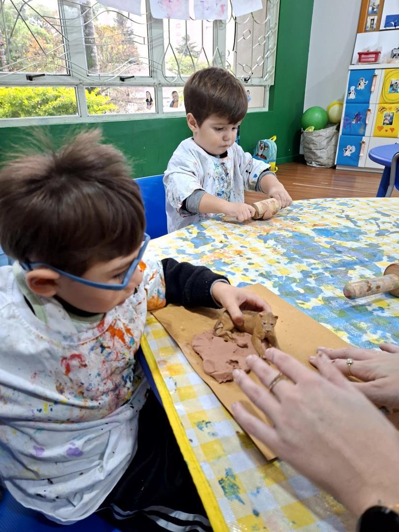 A atividade estimulou o vocabulário, a concentração e a curiosidade. Além disso, realizaram jogos de memória com os demais animais da narrativa e, nos dias seguintes, fizeram registros gráficos com argila e brincadeiras de identificação dos sons dos animais.