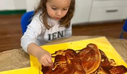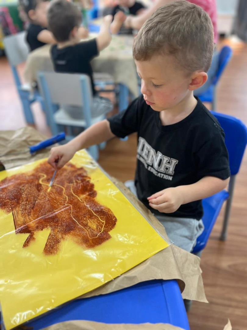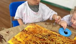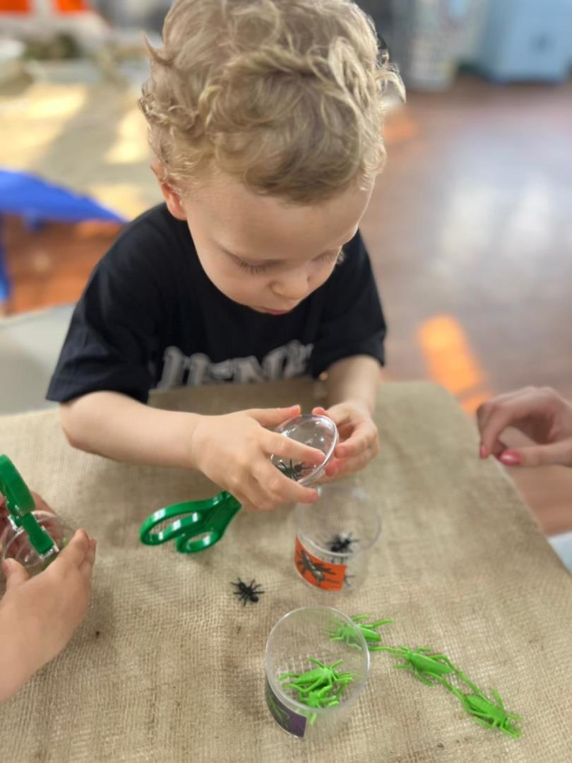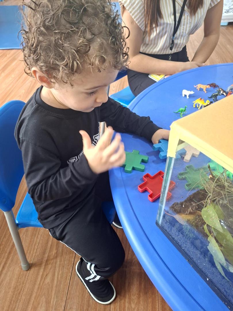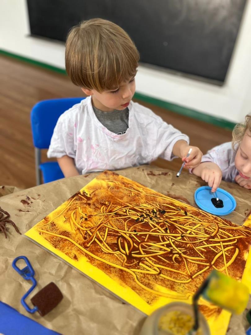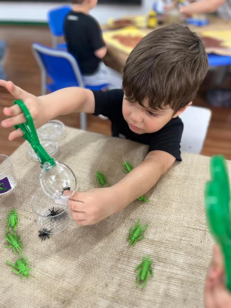 O conto “A Cigarra e a Formiga” também fez parte das vivências, enriquecendo a proposta com elementos concretos e momentos de encantamento. Além disso, Learning Centers foram organizados especialmente para o tema: pintura do formigueiro, brincadeiras de motricidade fina e a construção de um formigueiro colaborativo, que despertou a curiosidade e o cuidado dos pequenos nos dias seguintes.