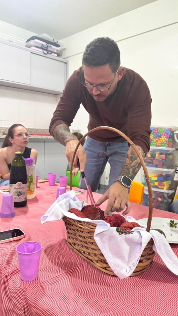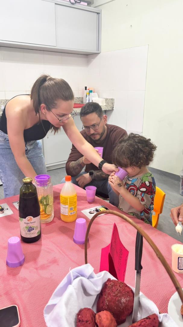 Para celebrar essa trajetória, foi realizado um delicioso café da tarde, no qual os alunos receberam seus familiares e apresentaram um dos resultados das aulas de culinária: pãezinhos de beterraba preparados por eles mesmos. O encontro proporcionou integração, troca de experiências e a oportunidade de as famílias vivenciarem um pouco do que os estudantes experimentaram durante o desenvolvimento do projeto.