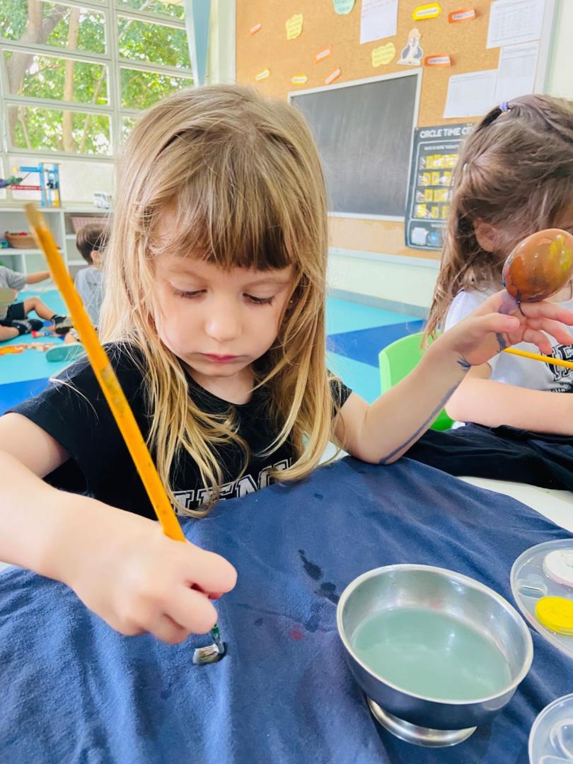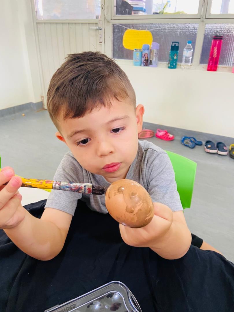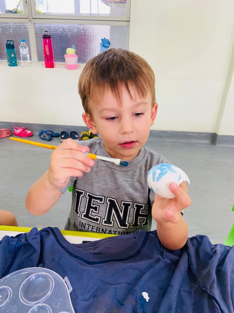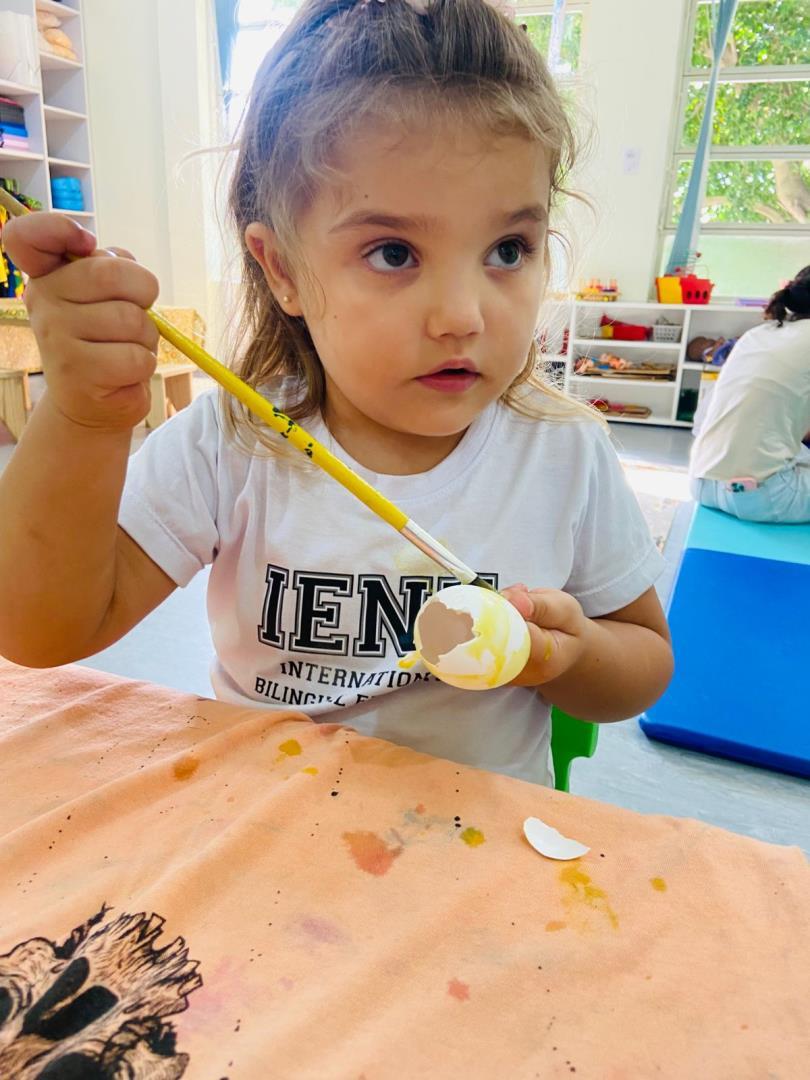 A proposta também incluiu a montagem da Osterbaum (Árvore de Páscoa), tradição de origem alemã presente na cultura brasileira. As crianças pintaram casquinhas de ovos e participaram da montagem da árvore, relacionando símbolos como renovação e esperança de forma significativa.