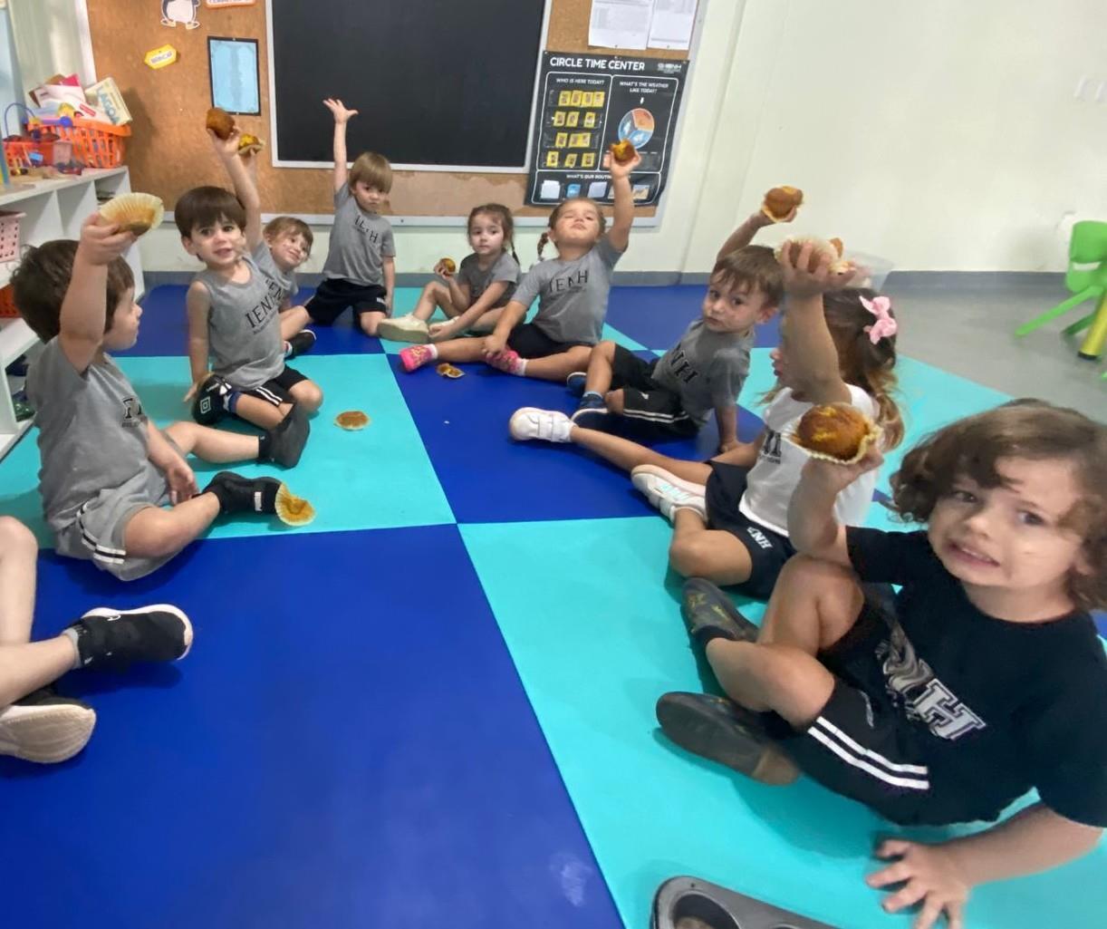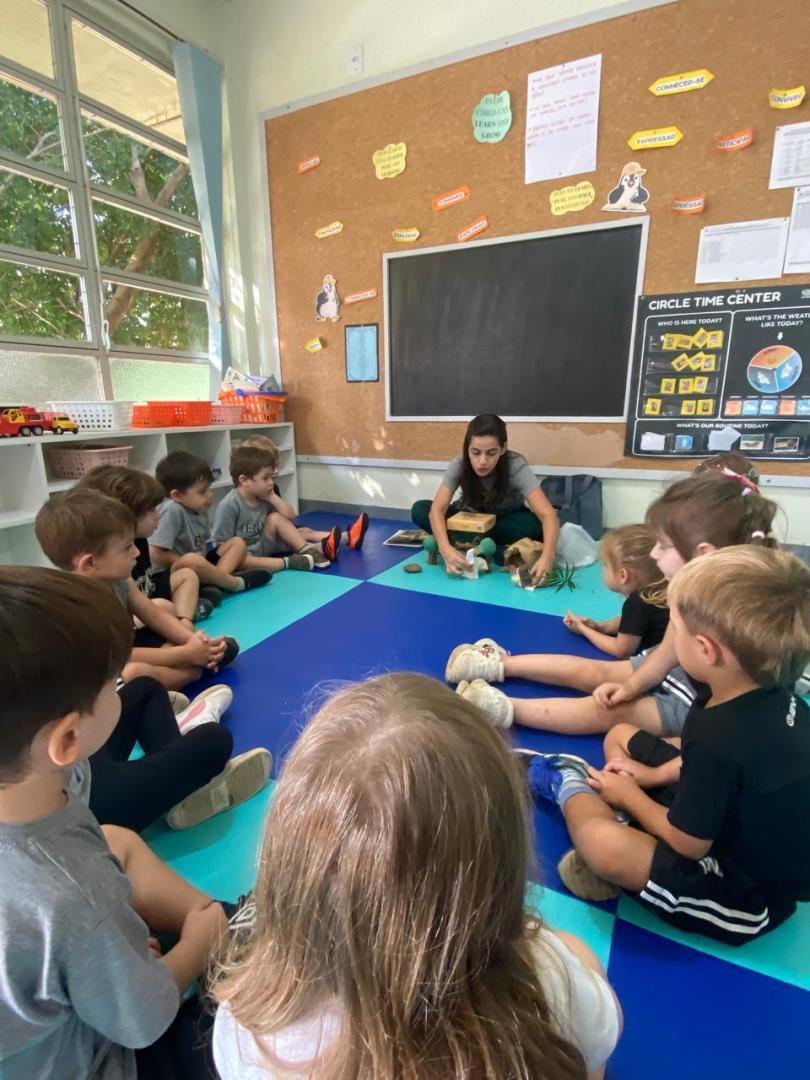 A atividade foi conduzida pela professora Vitória Diehl e pela teacher Thami Riva, proporcionando às crianças uma vivência de Páscoa baseada no fazer, sentir e compartilhar.