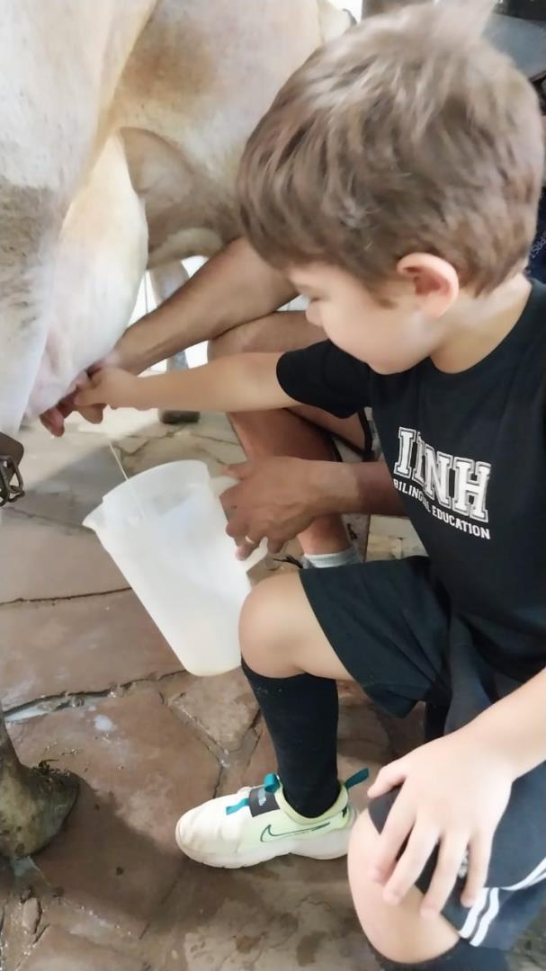 Entre as atividades realizadas, estiveram a visita aos animais da fazenda, a ordenha da vaca, passeio a cavalo e de trator, além do tour pelo espaço das aves, marcado por sons e cores vibrantes. Um delicioso lanche também fez parte do roteiro.