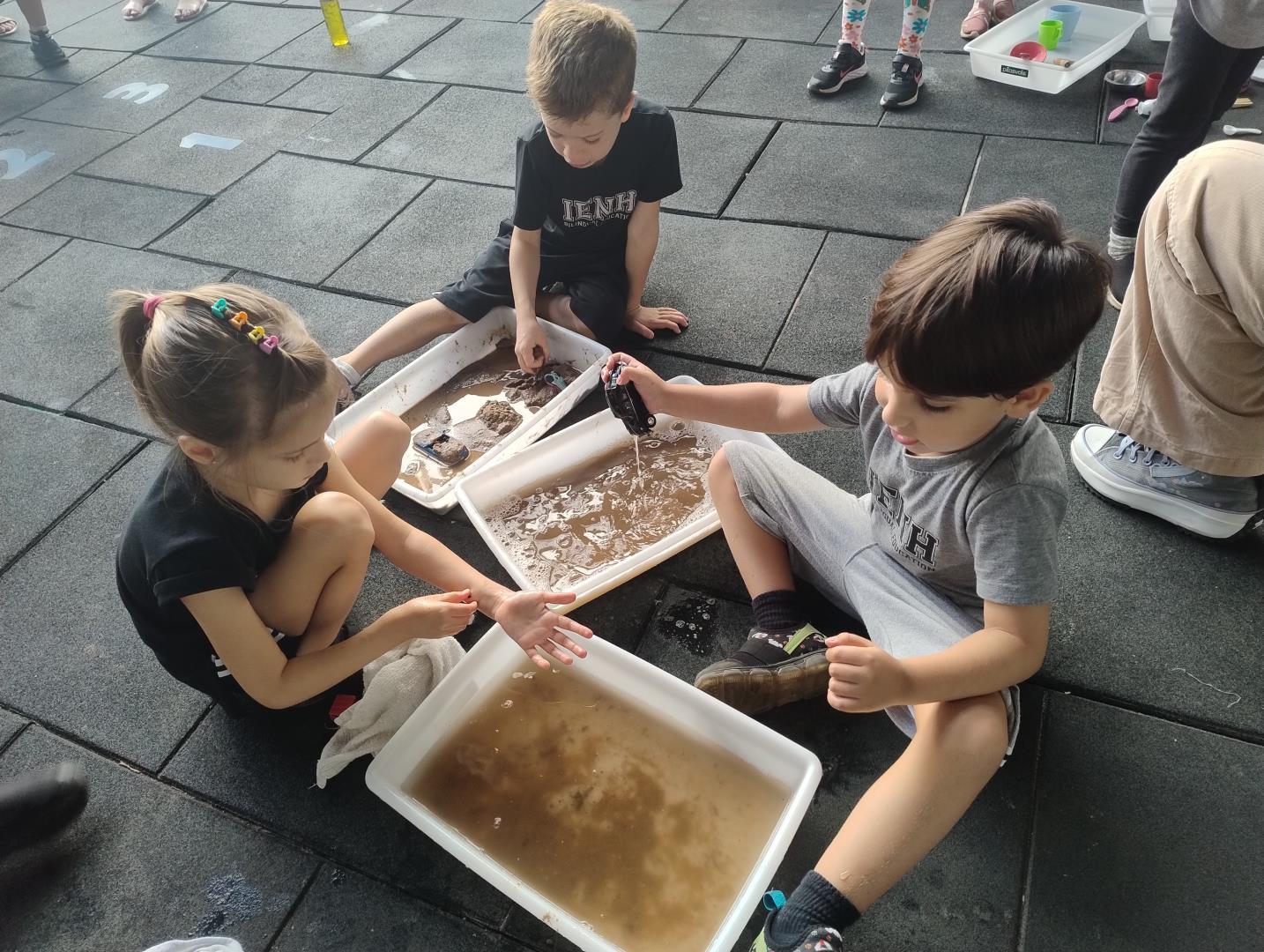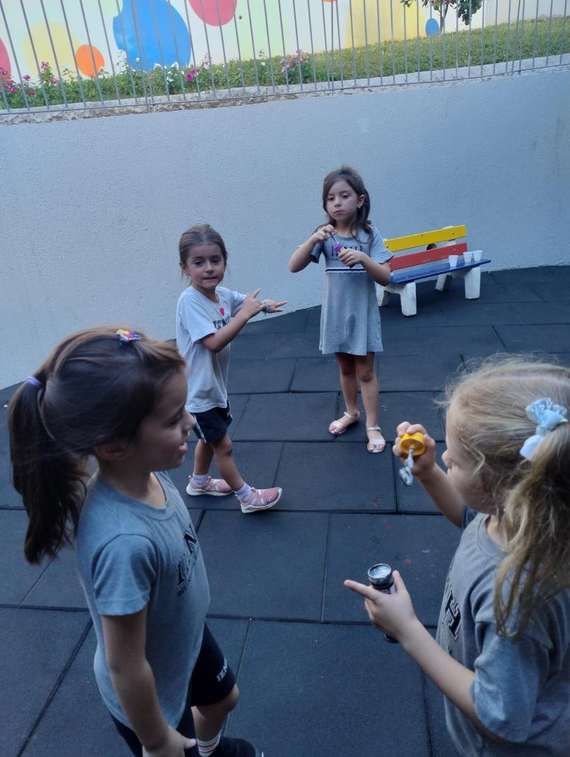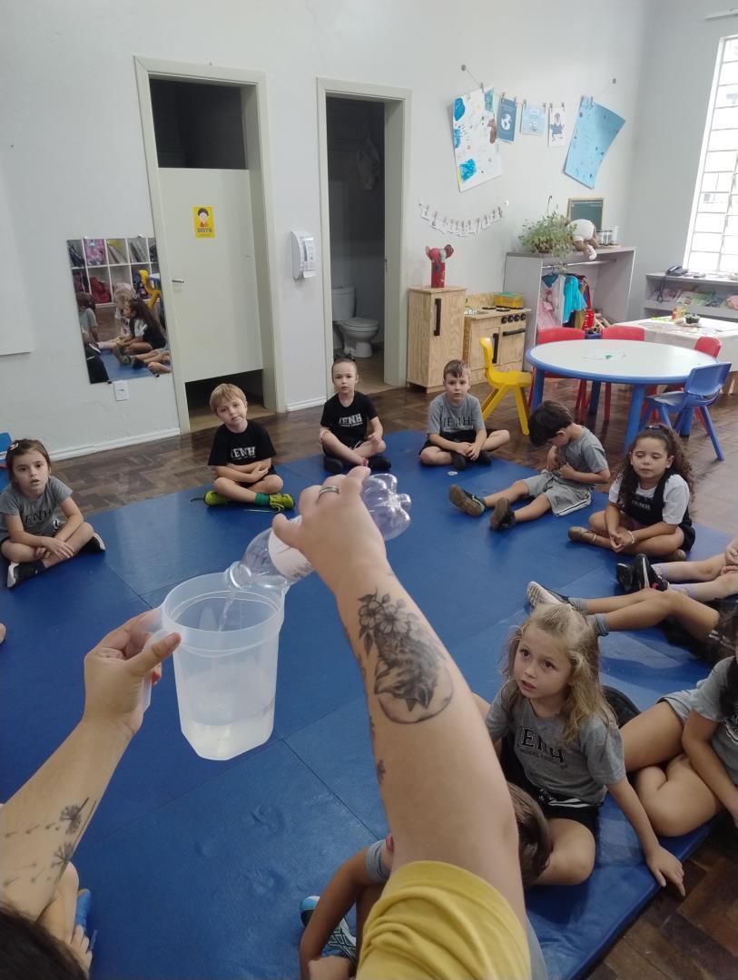 Dando início ao projeto, as crianças participaram do "Water Exploration Day", um momento de explorações práticas em que observaram a água em diferentes contextos do dia a dia. Foram propostas experiências como bolhas de sabão, transferência de água com funis, conta-gotas e seringas, lavagem de brinquedos, preparo de chá e pescaria de animais, possibilitando descobertas sobre as propriedades e os usos da água de forma lúdica e investigativa. Ao final da proposta, a surpresa do dia: a turma ganhou um mascote, um peixe!