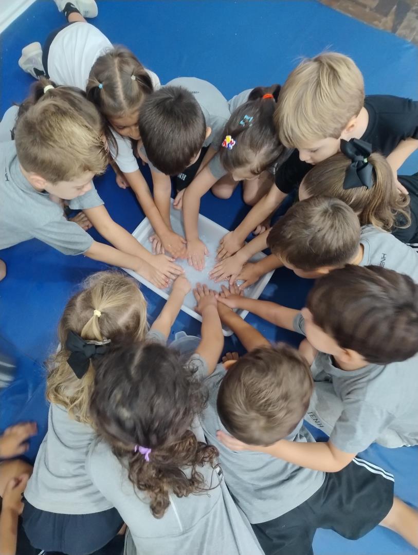 Acompanhada de uma carta explicativa, a atividade convidou as famílias a explorarem, junto às crianças, as transformações da água. Para isso, cada aluno recebeu um pequeno recipiente com orbeez, incentivando a observação das mudanças ocorridas a partir do contato com a água, de forma lúdica e investigativa.