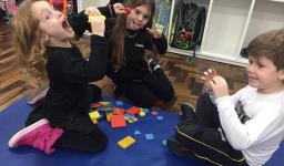 Uma das ações do projeto foi uma sessão de cinema do filme Divertida Mente em que, em uma das cenas, os personagens se transformam em formas bidimensionais. As Professoras Liliane Bohlke e Raquel Trintim aproveitaram este aspecto do filme para trabalhar as formas geométricas com os alunos. Canções, brincadeiras e jogos lógicos foram utilizadas para abordar o tema de forma lúdica e interativa.