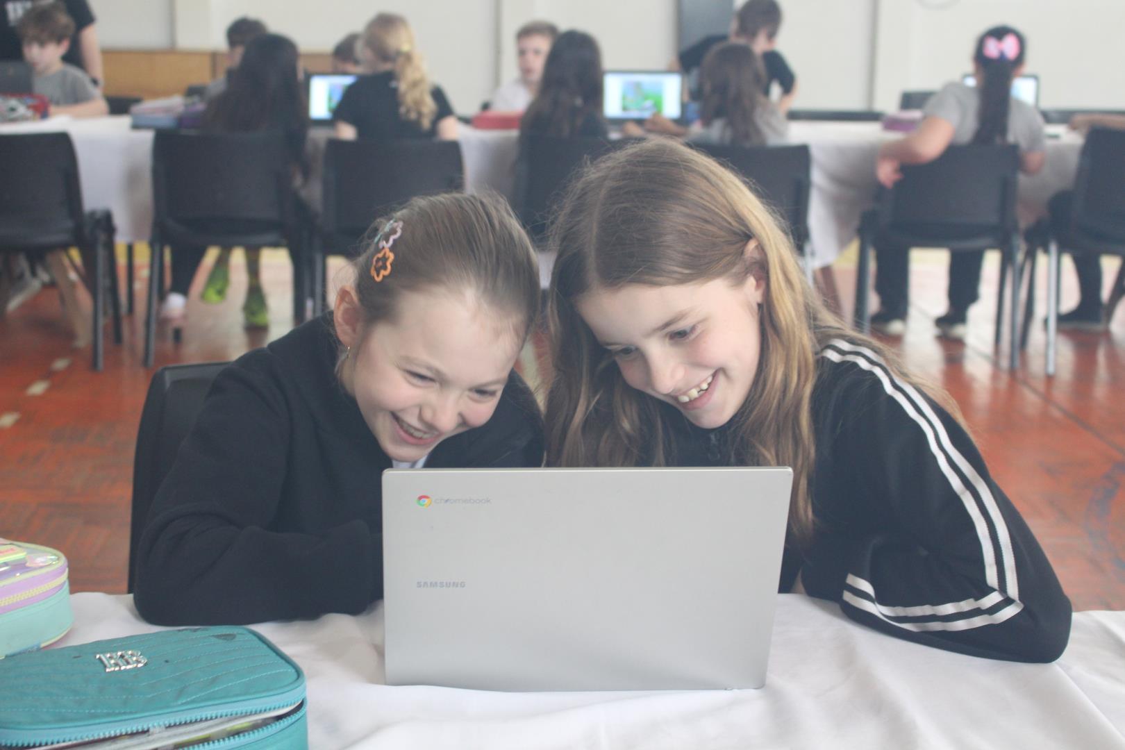 Em seguida, os estudantes foram desafiados a jogar o Gridlock Buster, um game, todo em língua inglesa, que simula a organização do fluxo de veículos e pedestres, incentivando a reflexão sobre o impacto da tecnologia no trânsito.