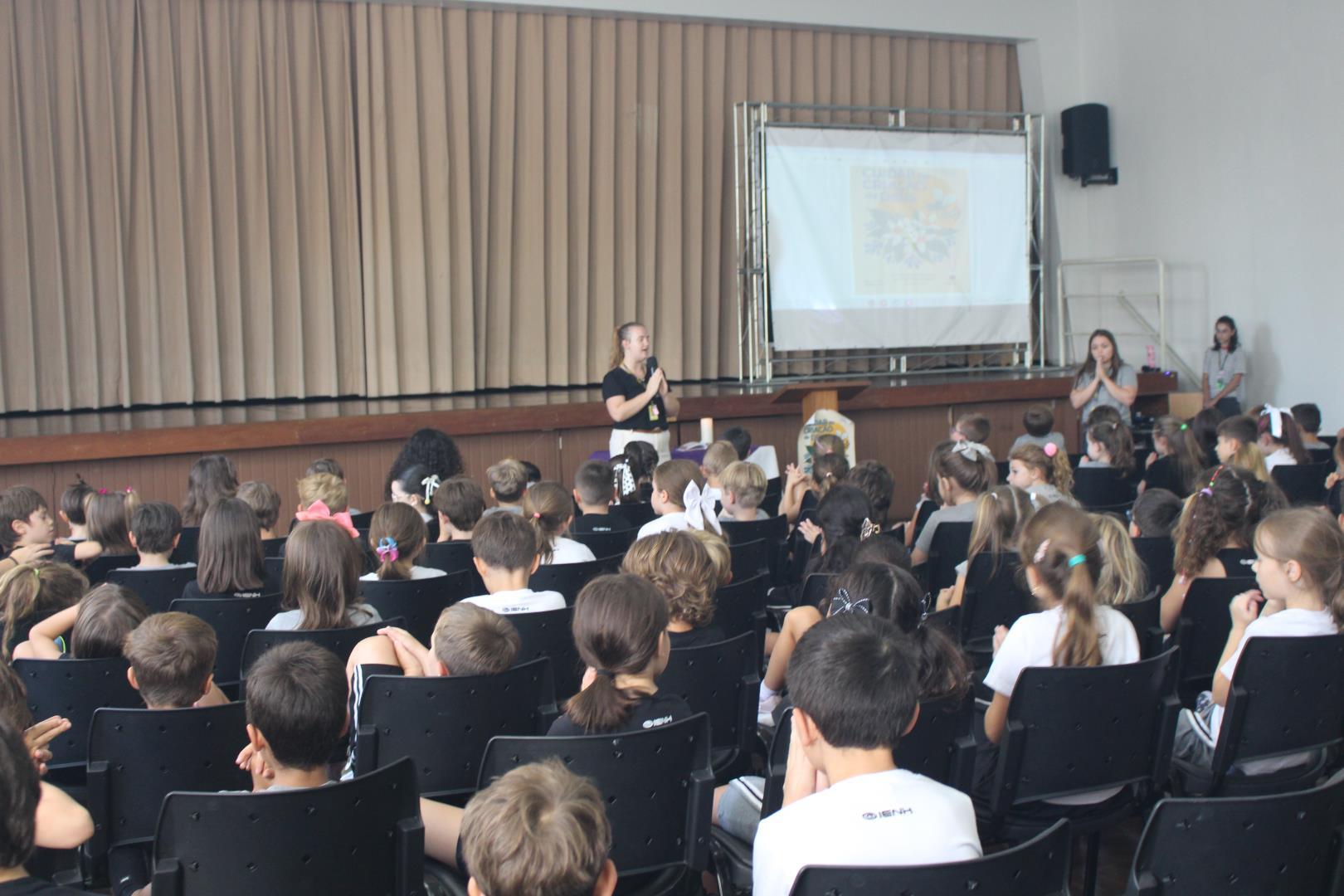 Nesse contexto, os estudantes foram convidados a refletir que cuidar da criação vai além da preservação do meio ambiente. Trata-se também de cultivar o cuidado com as pessoas ao nosso redor, com as relações que construímos e conosco mesmos no dia a dia.