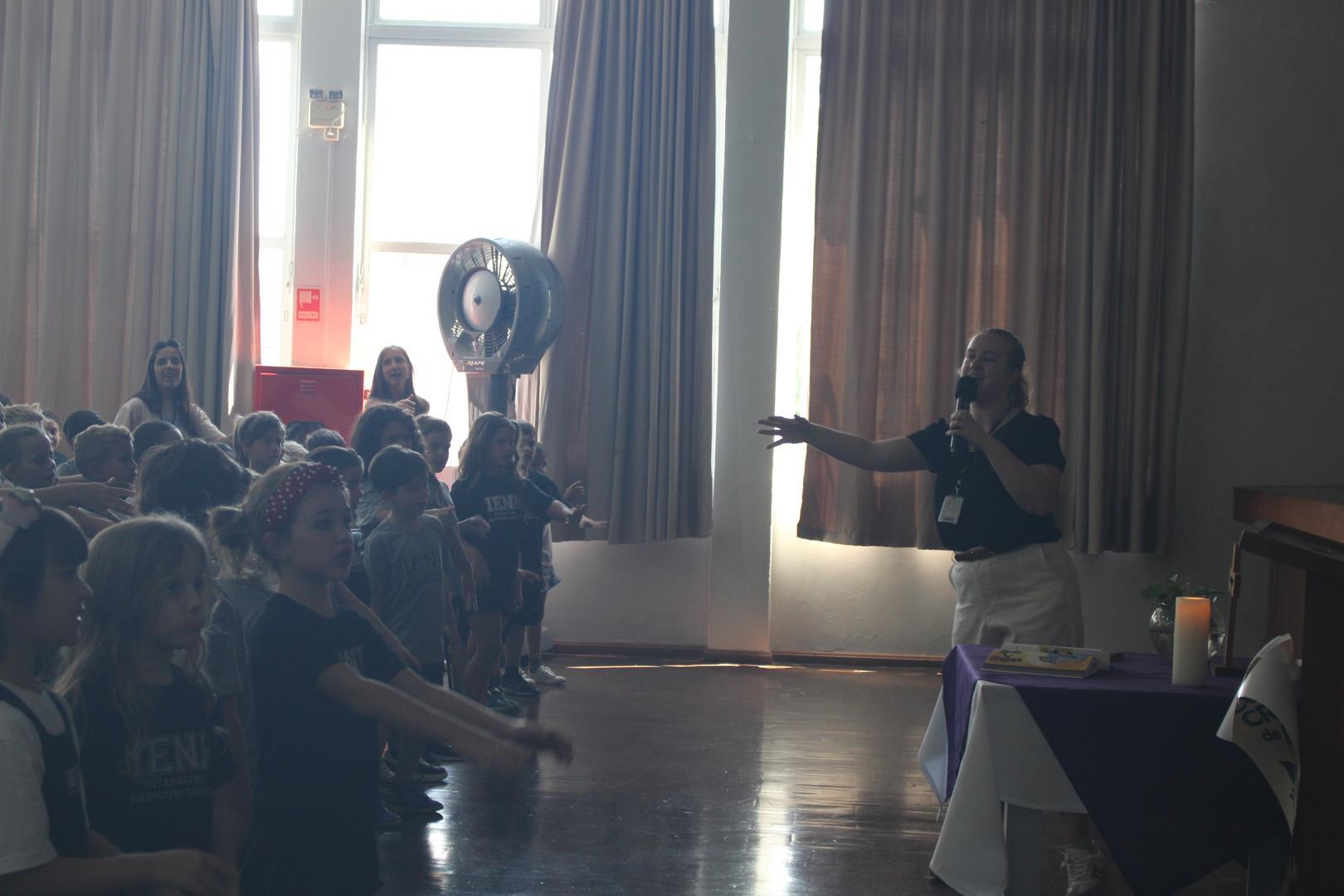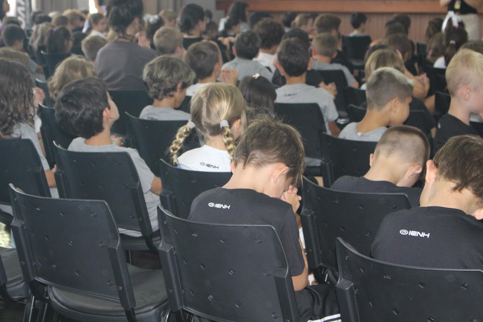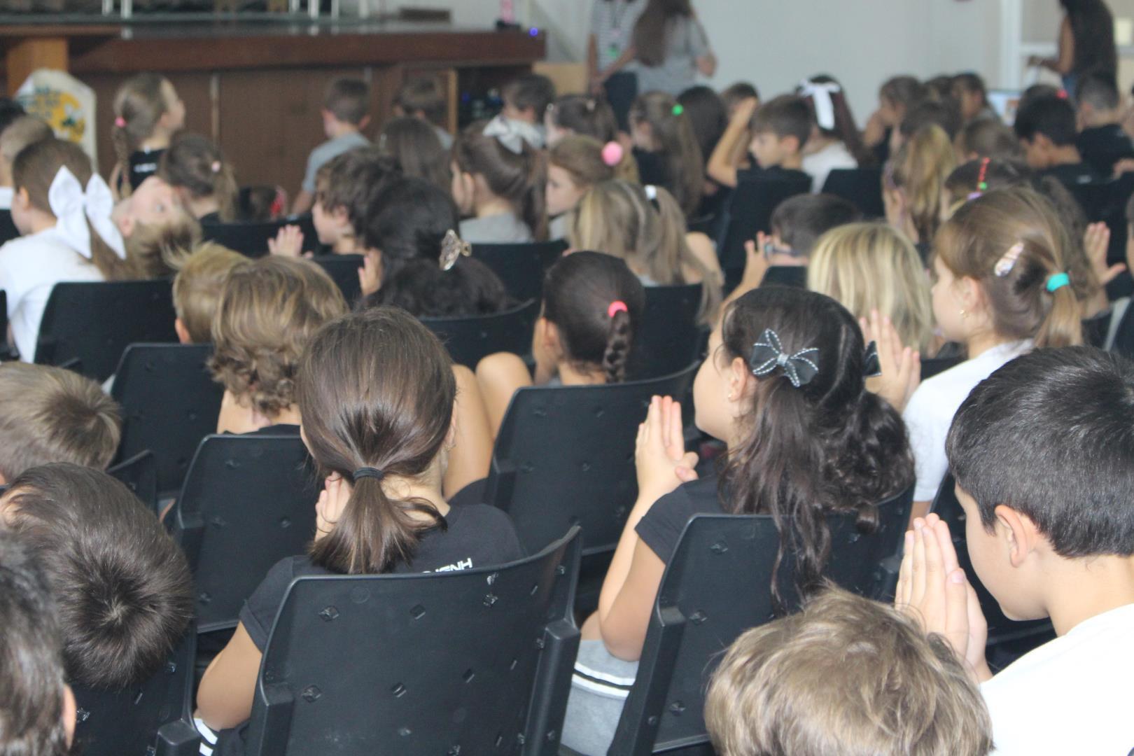 No dia 02 de março, o salão da Unidade Oswaldo Cruz foi espaço de encontro, acolhida e reflexão para os estudantes das turmas do Kindergarten 4 ao Year 5. O momento foi conduzido pela Pastoral Escolar, representada pela pastora Raquel Marques, marcando o início do ano letivo com uma proposta significativa e inspiradora.