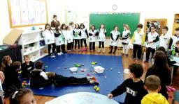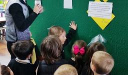 Os Níveis 4 e 5 foram responsáveis pela separação correta dos resíduos nas turmas da Educação Infantil. Deveriam multiplicar a ideia de separação dos resíduos orgânicos e inorgânicos nas salas de aula, bem como incentivar as famílias conscientizando-as da importância desta ação. Os alunos cumpriram o que foi proposto, separando corretamente os resíduos na sala, escolhendo um ajudante diário para auxílio na separação e multiplicando as ideias com diálogo para conscientização nos Níveis 2 e 3, além da produção de cartazes para divulgação.