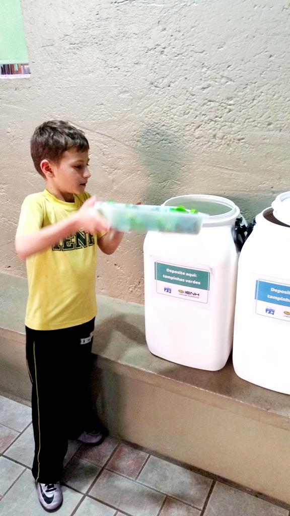 A coleta de 2kg de latinhas de alumínio e o armazenamento adequado do material foi a tarefa proposta ao 5º e 6º ano. Além de recolherem 3kg de latinhas, os alunos pesquisaram e descobriram a forma correta para reciclagem do alumínio, que é revertida em economia para o meio ambiente.