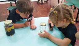 No Laboratório de Ciências da IENH – Unidade Pindorama, as crianças do Nível 3B da Educação Infantil Bilíngue estudaram sobre a natureza e os animais, na terça-feira, dia 02 de abril. Junto com a Professora - Leticia Dietrich, a turma pesquisou e explorou diversos materiais.