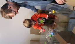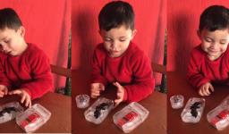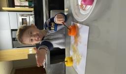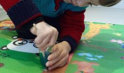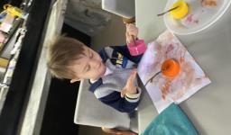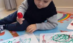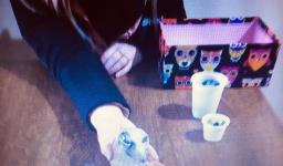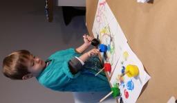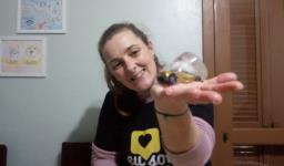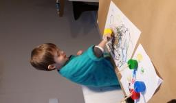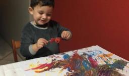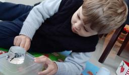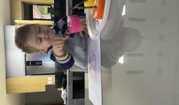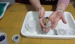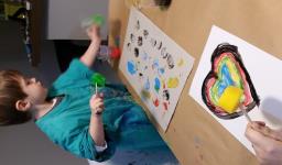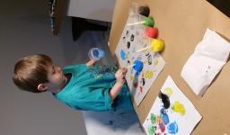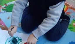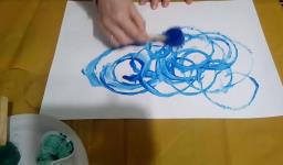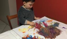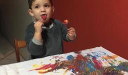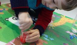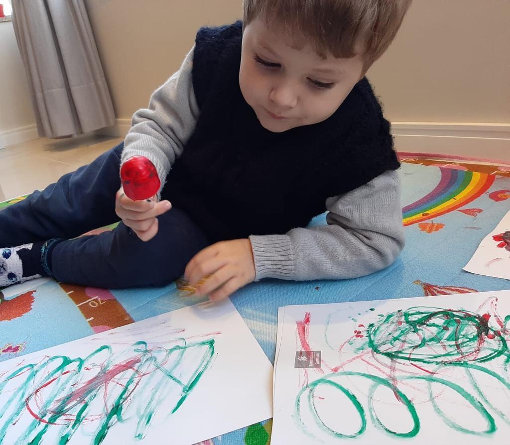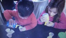 Em seguida, os alunos puderam pintar com a tinta enquanto derretia, logo voltando a ser líquido novamente. Também foi proposto que os alunos congelassem um brinquedo ou um objeto pequeno, colocando dentro de um copinho com água. Com o objeto congelado puderem observar o processo de descongelamento.
