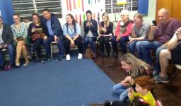 Para finalizar o trabalho e torná-lo ainda mais significativo, as famílias receberam um convite especial para o lançamento do livro. O momento ocorreu no final da tarde do dia 17 de setembro. Inicialmente, os estudantes apresentaram algumas canções utilizando diversos instrumentos. Em seguida, as famílias foram convidadas a cantar com seus filhos/filhas. No encerramento, em roda, todos cantaram diversas antigas e os alunos entregaram os livros aos seus familiares. “Foi um momento especial e cheio de significado. Lindo ver as trocas entre as famílias com seus filhos, com muita alegria, carinho e encantamento”, relata Cláudia.