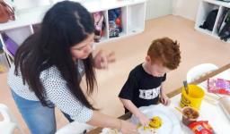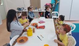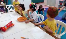 Em seguida, a turma foi convidada a brincar de “Feeling boxes”. A Teacher dizia um sentimento (happy, angry, scared e sleepy) e o aluno precisava jogar uma bolinha dentro da caixa em que estava o emoji correspondente. Após, os alunos foram desafiados a preparar um pirulito de emoji. Cada um fez o seu com o auxílio da Teacher e o resultado foi muita diversão! A Professora Cláudia Nis acompanhou a atividade.