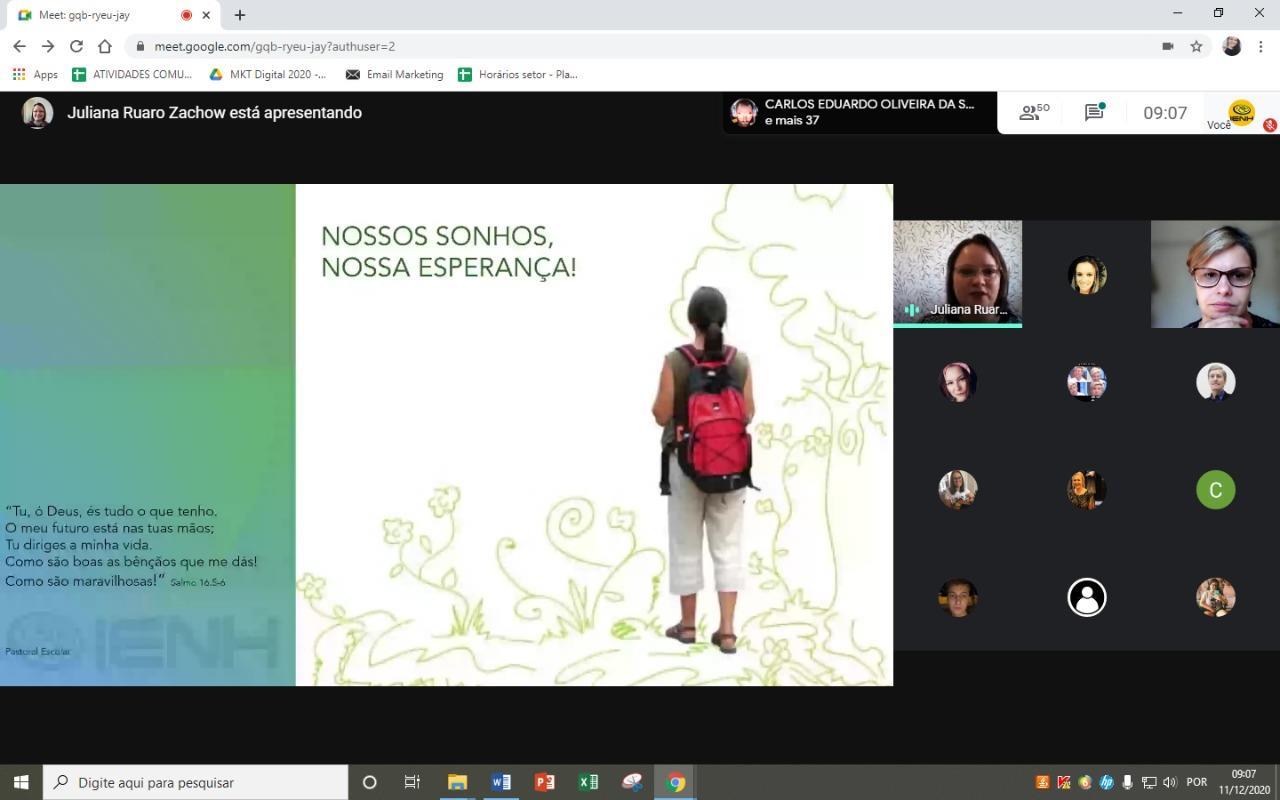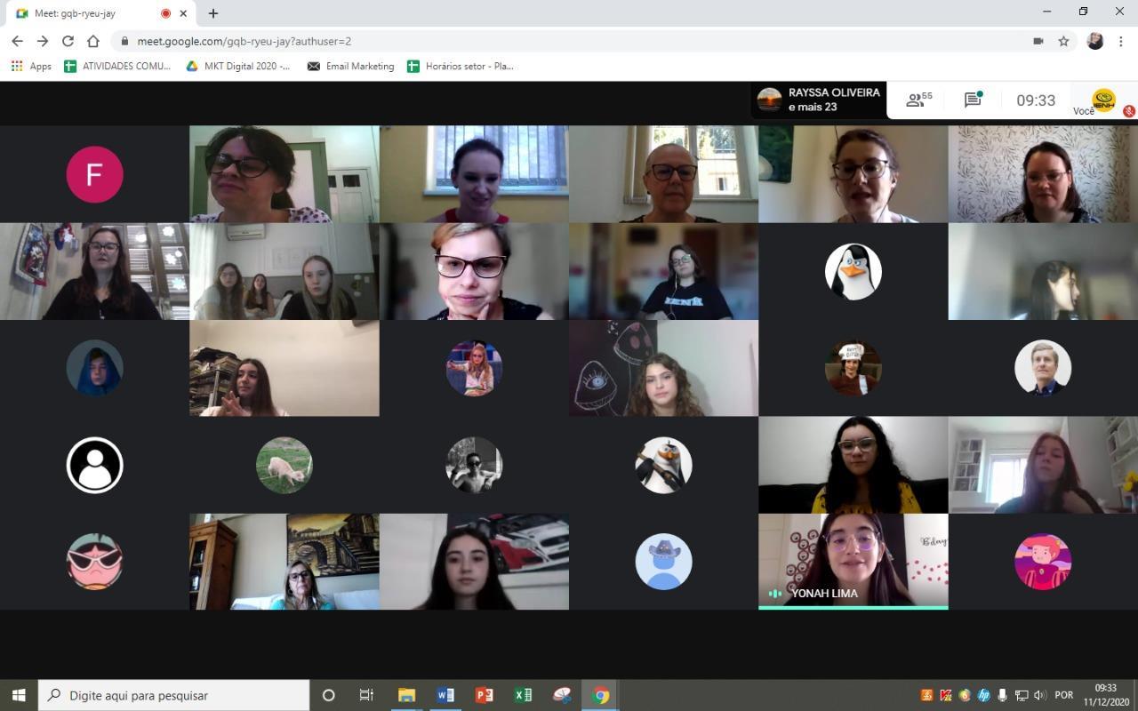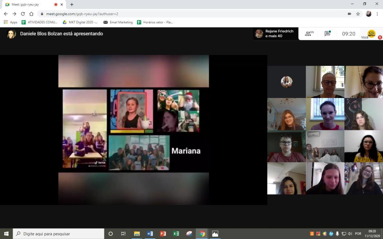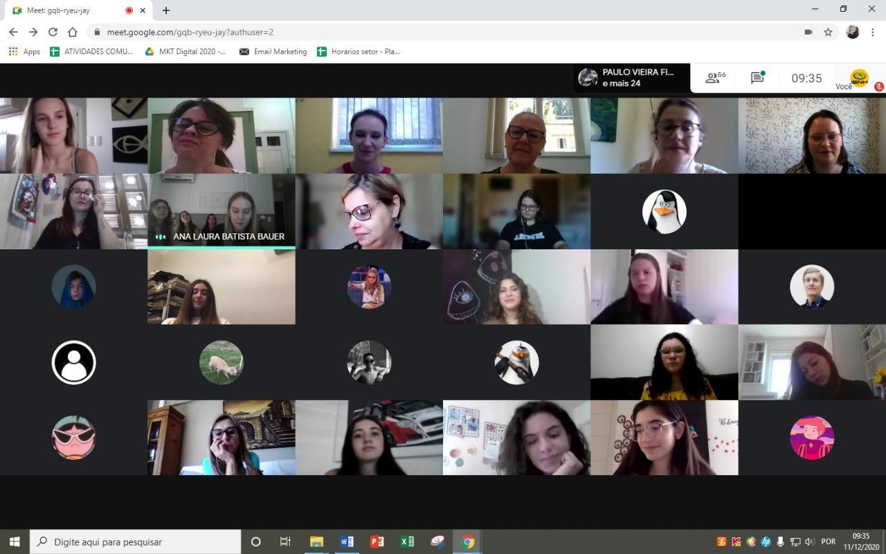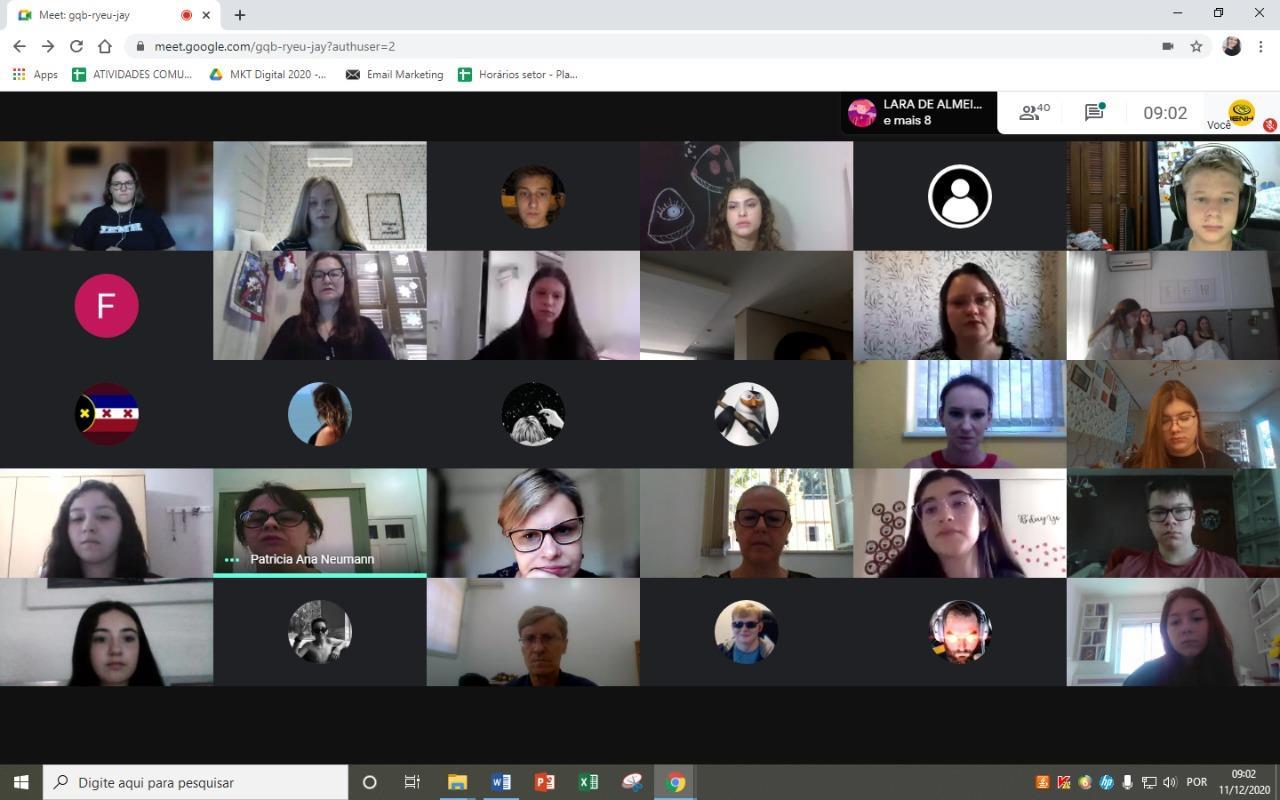 Reunidos pela Google Meet, os alunos dos 9°s anos do Ensino Fundamental Bilíngue da IENH – Unidade Fundação Evangélica participaram de um encontro de homenagens. Leituras, vídeos e reflexão fizeram parte do momento ocorrido na manhã de 11 de dezembro.