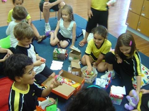 Através da aprendizagem sobre a importância de um cardápio alimentar saudável, foram feitas diversas atividades. Entre elas, um “amigo secreto” onde o presente foi um lanche saudável preparado pelo aluno e sua família.