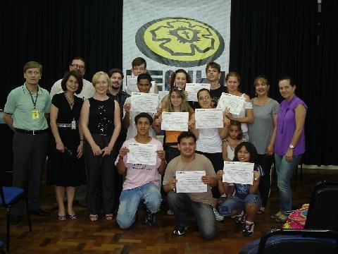 A Instituição Evangélica de Novo Hamburgo – IENH realizou, no dia 08 de dezembro, a cerimônia de formatura dos alunos do Curso Básico de Informática para Pessoas com Necessidades Especiais – PNEs (deficiência auditiva). O curso é vinculado com o Programa Social da IENH – Projeto Tecla Solidária e atendeu 11 alunos da Escola Estadual Especial Keli Meise. A cerimônia de formatura ocorreu a partir das 17h30min, na Sala de Conferências da IENH – Unidade Fundação Evangélica.