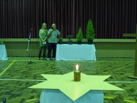 Para finalizar a atividade ocorreu a Meditação final, que foi coordenada pelo Pastor da IENH – Júlio Cézar Adam. Adam falou, a partir do Versículo Mateus 5. 14 – 16, sobre a luz que as pessoas devem ser uma na vida das outras. Para ilustrar essa luz foram utilizadas velas, acessas pelos alunos e colocadas em uma estrela. Essas velas foram organizadas pelos alunos durante as aulas de Ensino Religioso e simbolizaram uma das velas da coroa de advento.