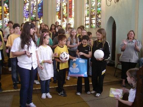 As novas bolas foram adquiridas pelo GEOC com o dinheiro arrecadado na Feira de Artesanato, organização de rifa e outras atividades.