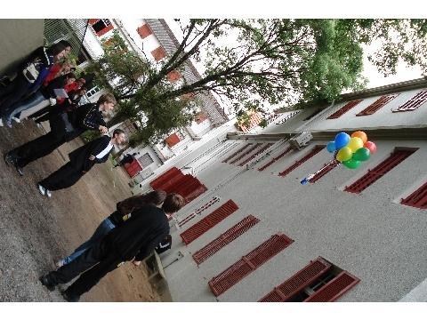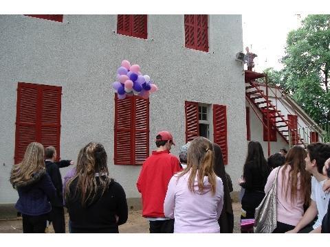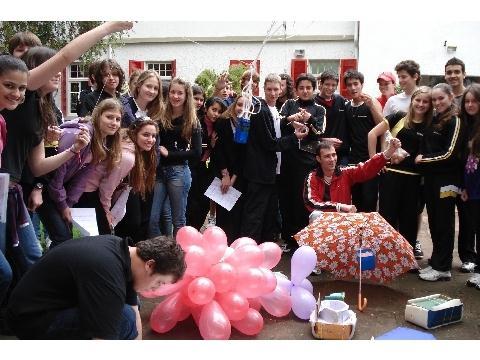 Durante a atividade, um grupo de alunos, juntamente com o professor, subiu para o Internato e, de uma janela jogou os ovos utilizando os recipientes. No pátio ficaram os demais alunos que recolheram os objetos após a queda no chão para verificar se o ovo havia quebrado ou não.