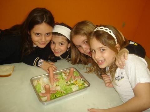 Os alunos da 2ª série B do Currículo Bilíngüe da IENH – Unidade Oswaldo Cruz realizaram, nos dias 07 e 08/10, atividades culinárias. Eles criaram receitas de saladas, em inglês, e depois as colocaram