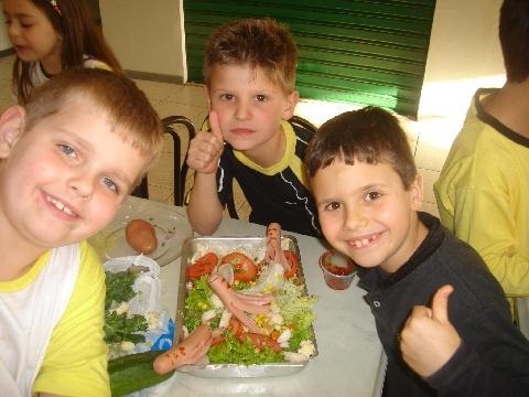 Durante a atividade, os alunos – divididos em grupos, criaram as receitas e produziram as saladas para representar o jardim descrito na música. As saladas tinham Octopus (polvos), que pela música povoam o jardim e recebem as crianças que o visitam. Os “polvos” foram representados com salsichas.