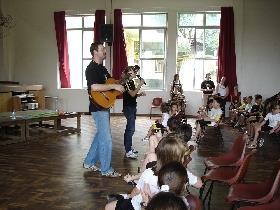 Durante a atividade, o Pastor Adam, juntamente com a professora de Canto da IENH – Michele Andrioli Batista, cantaram algumas músicas com os estudantes.
