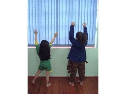 Os alunos interligaram o brincar, o dramatizar e as obras de Portinari, para montarem suas releituras. Nas releituras, os estudantes reproduziram em fotos e “congelaram” as pinturas “Algodão”, “Jogos Infantis” e “Menina Sentada”. Para as fotos, as turmas observaram as imagens, utilizaram a linguagem corporal, as roupas e os acessórios parecidos com as pinturas originais.