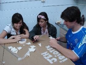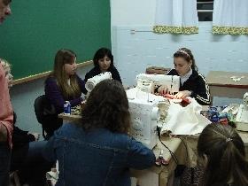 As sacolas são produzidas com os seguintes materiais: lona e chita, são feitas em dois tamanhos e em diversas cores. Além de fabricar, os estudantes comercializam as sacolas na escola e estão procurando mercados que desejem comprar os produtos.