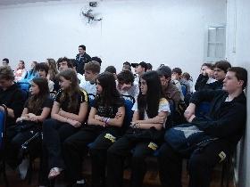 No dia 19/09, o Grêmio Estudantil Castro Alves – GECA da IENH – Unidade Fundação Evangélica promoveu reunião com os alunos da Unidade sobre o Projeto de Meio Ambiente. A atividade contou com a presença de cerca de 70 alunos da 6ª série do Ensino Fundamental até a 3ª série do Ensino Médio. A reunião ocorreu a partir das 10h30min, na Sala de Conferências da Unidade.