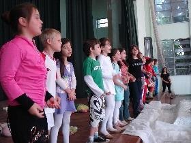 No final da apresentação, os alunos falaram que todas as crianças têm direito a um nome e nesse momento cada um falou o seu próprio nome. Ainda relataram que cada criança tem direito a um abraço e a Hora Cívica acabou com todos se abraçando.