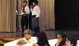 Uma “família” formada por estudantes conduziu a imaginação da plateia durante a Hora Cívica realizada dia 18 de setembro, que ao final, acompanhou o desfile das delegações, divididas pelas regiões do Rio Grande do Sul. A apresentação contou com um momento musical e por fim a execução do Hino Rio-Grandense à capela.