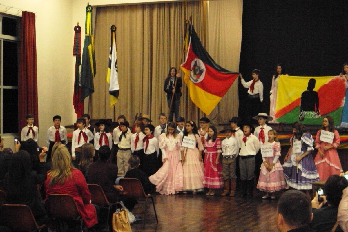 Após a leitura de um texto chamado Olimpíadas Gaudérias surgiu a ideia de transformá-lo em uma apresentação. A professora de Língua Portuguesa, Bianca dos Reis, transformou o texto em um roteiro e sobre ele foram criadas as modalidades olímpicas gaúchas, como a bocha, o truco, a corrida de bicicleta, a dança da chimarrita, competição de trova, entre outras, onde os alunos encenaram a execução de cada modalidade.