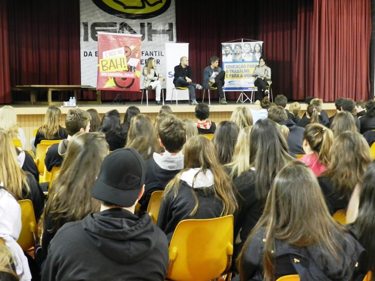 Na manhã de 27 de setembro, os estudantes da 1ª e da 2ª série do Ensino Médio da IENH – Unidade Fundação Evangélica participaram do Bah!te Papo promovido pelo Caderno Bah! do Jornal NH em parceria com a Coordenadoria de Juventude da Prefeitura Municipal de Novo Hamburgo, Grupo Sinos, do SESC e do SENAC.