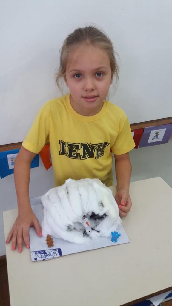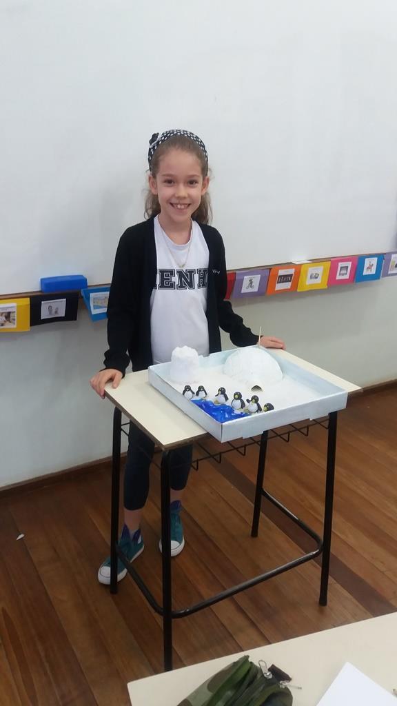 Nos momentos de apresentações, falaram sobre as regiões em que gostariam de criar uma moradia, como na região polar, na selva, no deserto e no oceano. Também abordaram a cor da casa (It is yellow, green, white...), descreveram o tamanho (It is big, small, medium size), agregando na descrição novos adjetivos que aprenderam: new, old, ugly, beautiful, short, long, comfortable, cozy, etc. “Os alunos desenvolveram a oralidade em Inglês ao compartilhar com os colegas as características da casa”, comenta a Professora Carla Jaqueline Baumgratz.