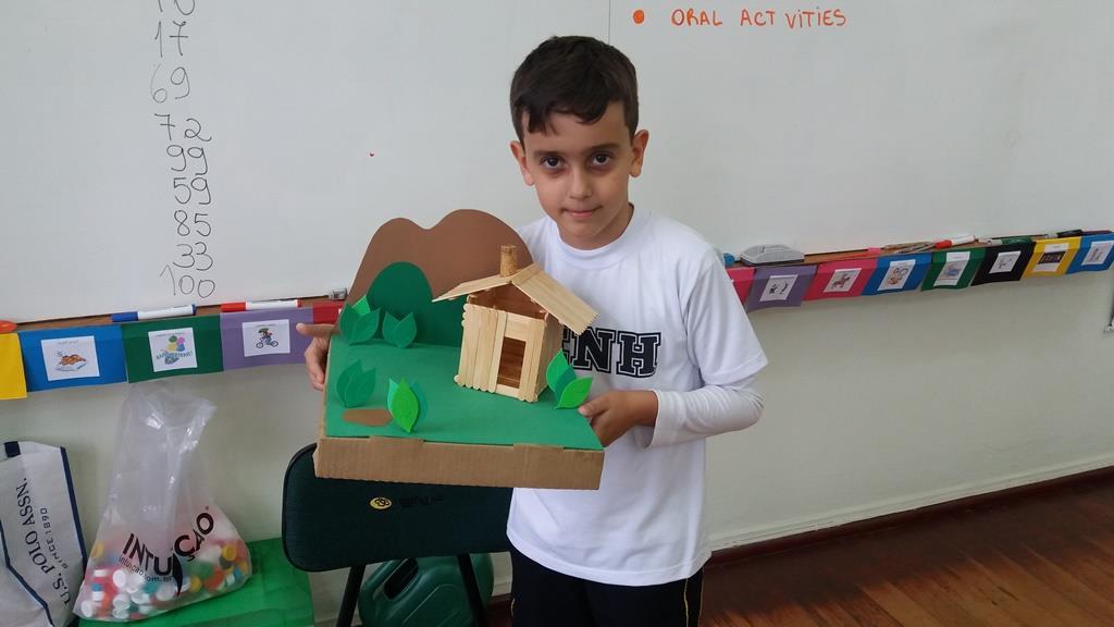 Na primeira semana de setembro, o “Show and Tell” foi iniciado na IENH – Unidade Pindorama. Os alunos dos 2ºs anos do Ensino Fundamental Bilíngue realizaram apresentações orais em Inglês de três a cinco minutos sobre maquetes de casa que criaram.