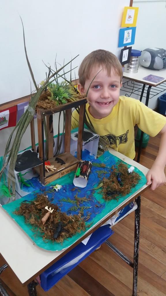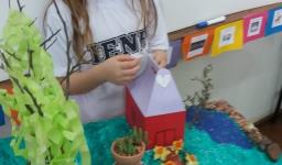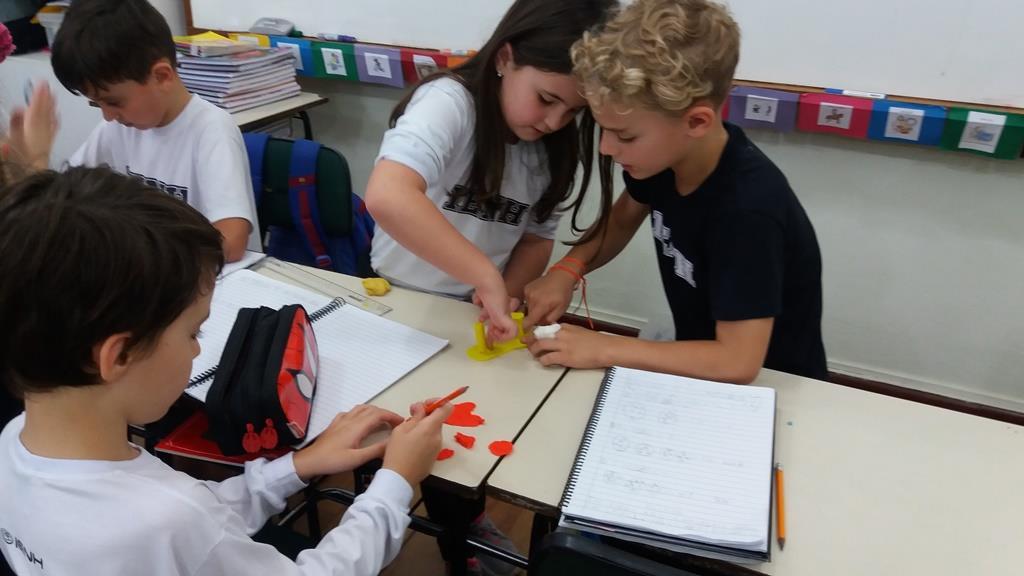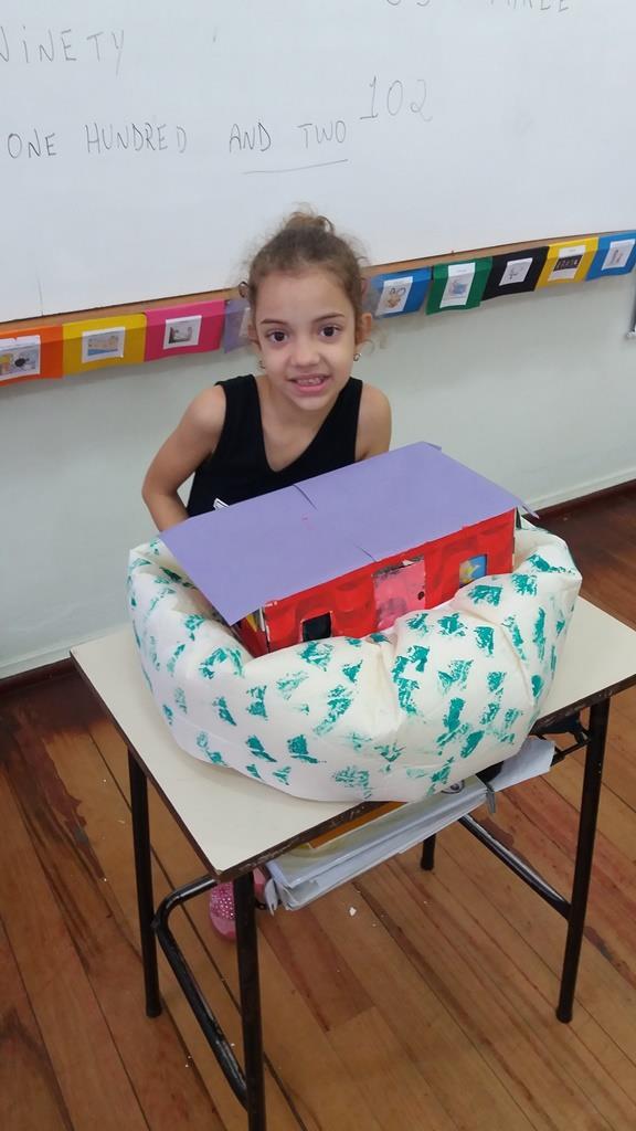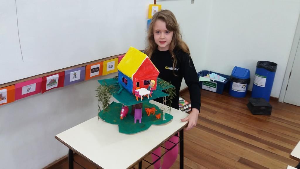 De acordo com a Professora Carla, os estudantes abordaram todo o vocabulário de Inglês envolvendo os conteúdos aprendidos sobre as partes da casa e mobiliário. Tal temática foi desenvolvida no projeto de estudos que possibilitou pesquisas desde as primeiras moradias dos homens das cavernas até as casas com energias sustentáveis. Na maquete utilizada para os estudos em sala de aula, eles também puderam criar o mobiliário com massa de modelar e, para isso, precisaram estruturar frases com o uso do “There is” e “There are”, para descobrir o mobiliário que teriam de criar para ela. “Eles amaram realizar a maquete e mostrar aos seus colegas, bem como falar sobre os materiais utilizados, sua pesquisa a respeito e criação do mobiliário”, relata a Professora Carla.