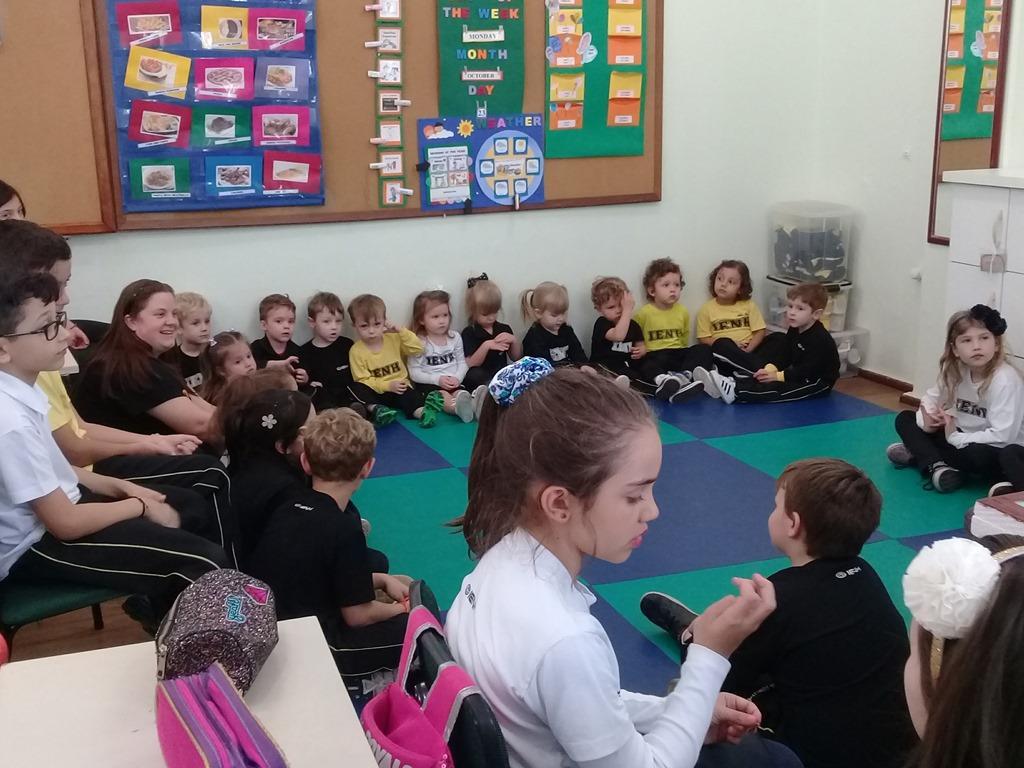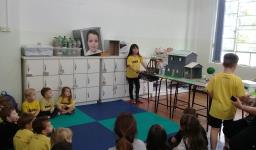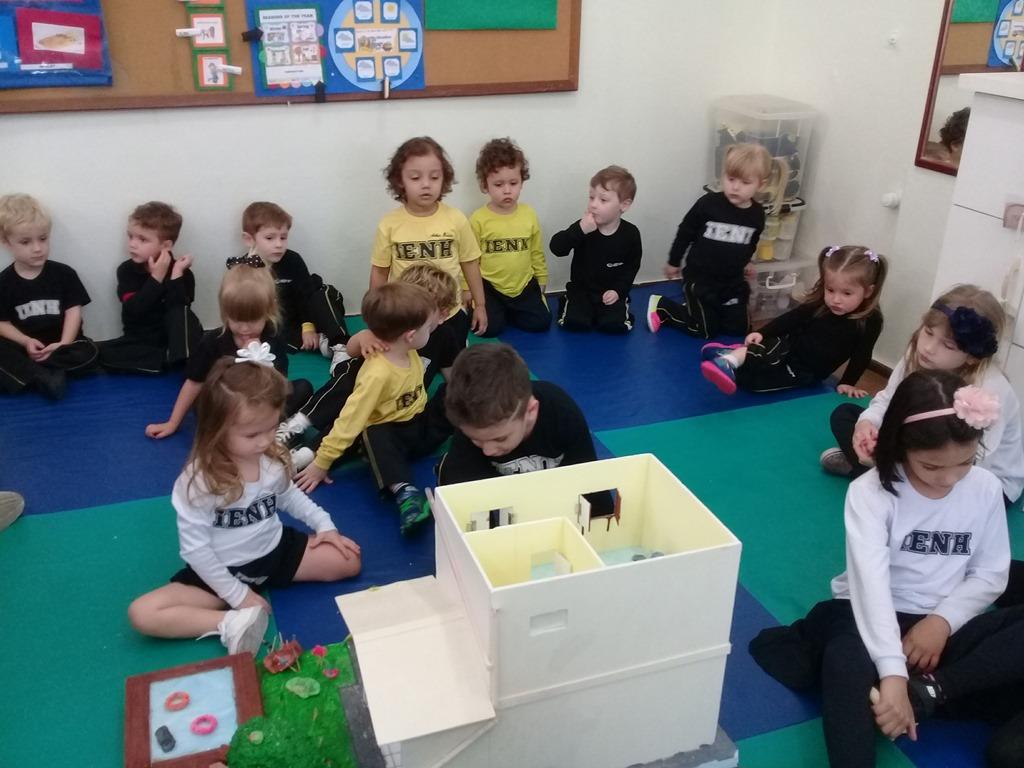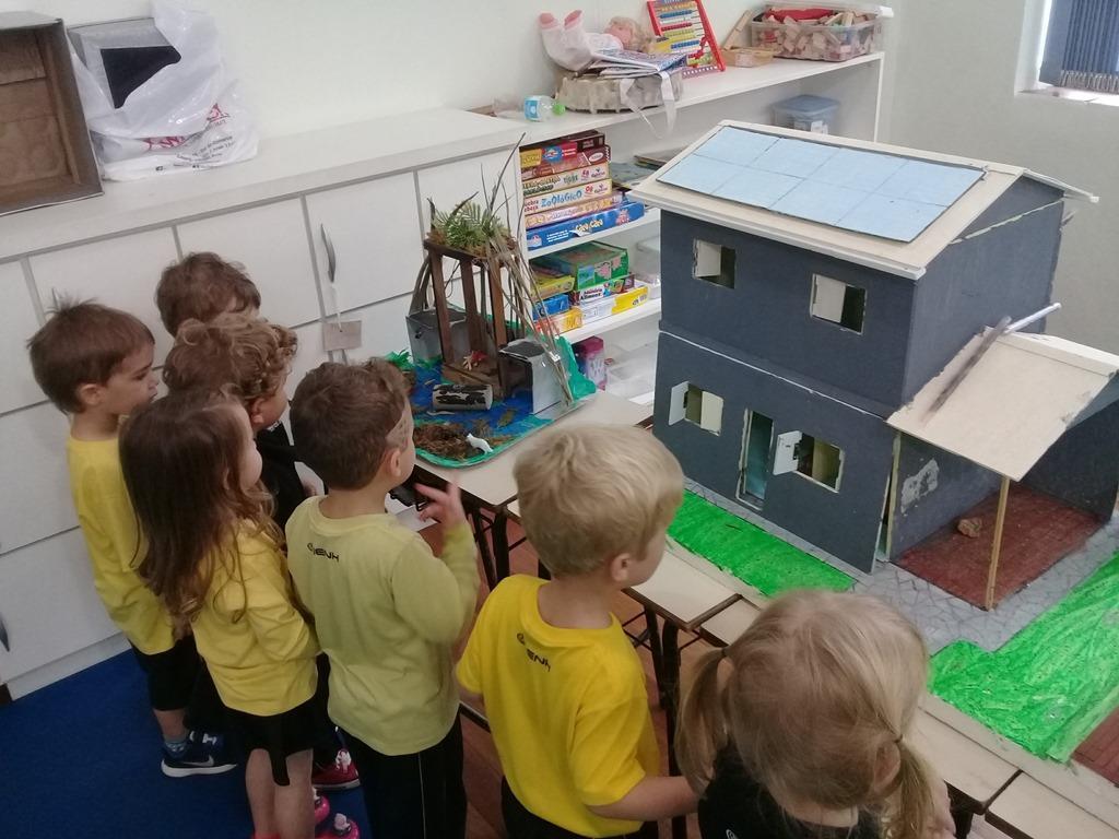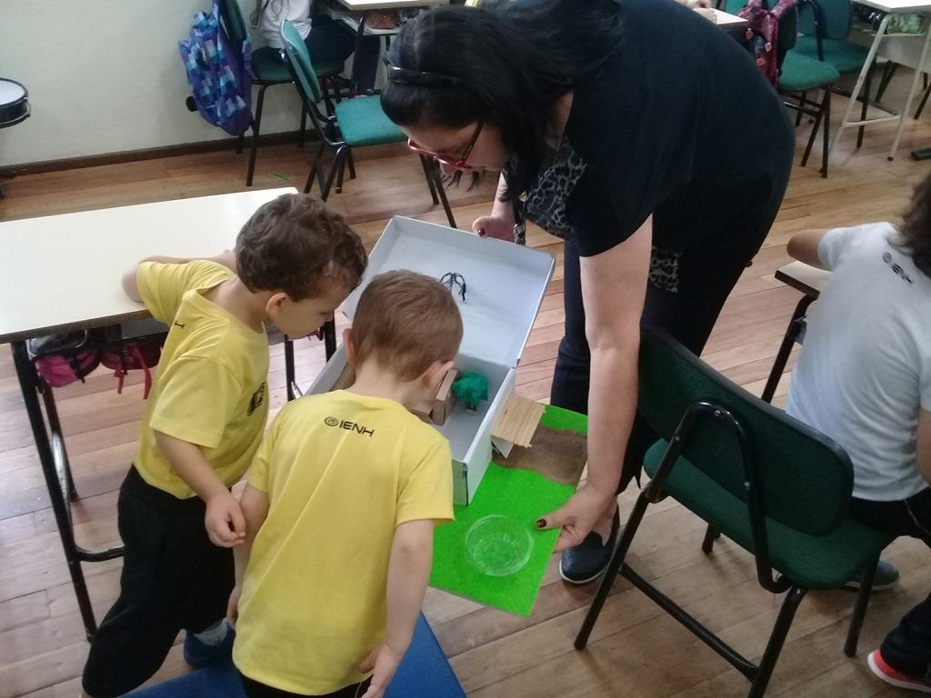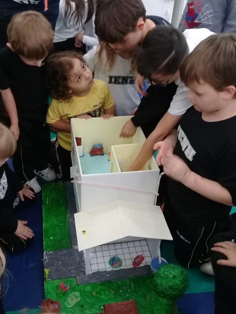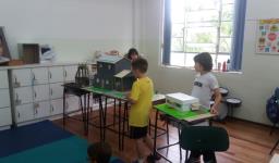 As turmas dos 2ºs anos também apresentaram as maquetes para os alunos do Nível 2 da Educação Infantil que estão desenvolvendo projeto de estudos “Brincando e construindo vamos aprender, e diferentes moradias conhecer!”. Acompanhados pela Professora Ana Weber, os pequenos estudantes, muito curiosos e atentos, ouviram as explicações dos colegas dos 2ºs anos. “Esse momento de trocas foi muito gratificante aos alunos, possibilitando o aprimoramento das pesquisas que estão realizando”, conclui Carla.